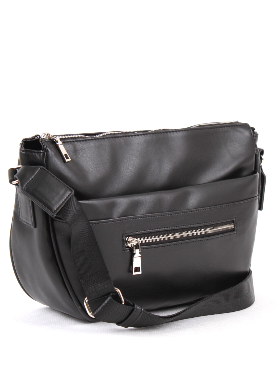 Женская сумка с одним отделением на молнии. На передней стенке - два кармана на молнии. Один карман на молнии - на задней стенке. Внутри открытый карман для телефона и карман на молнии для документов. Максимальная высота ручки - 65 см.