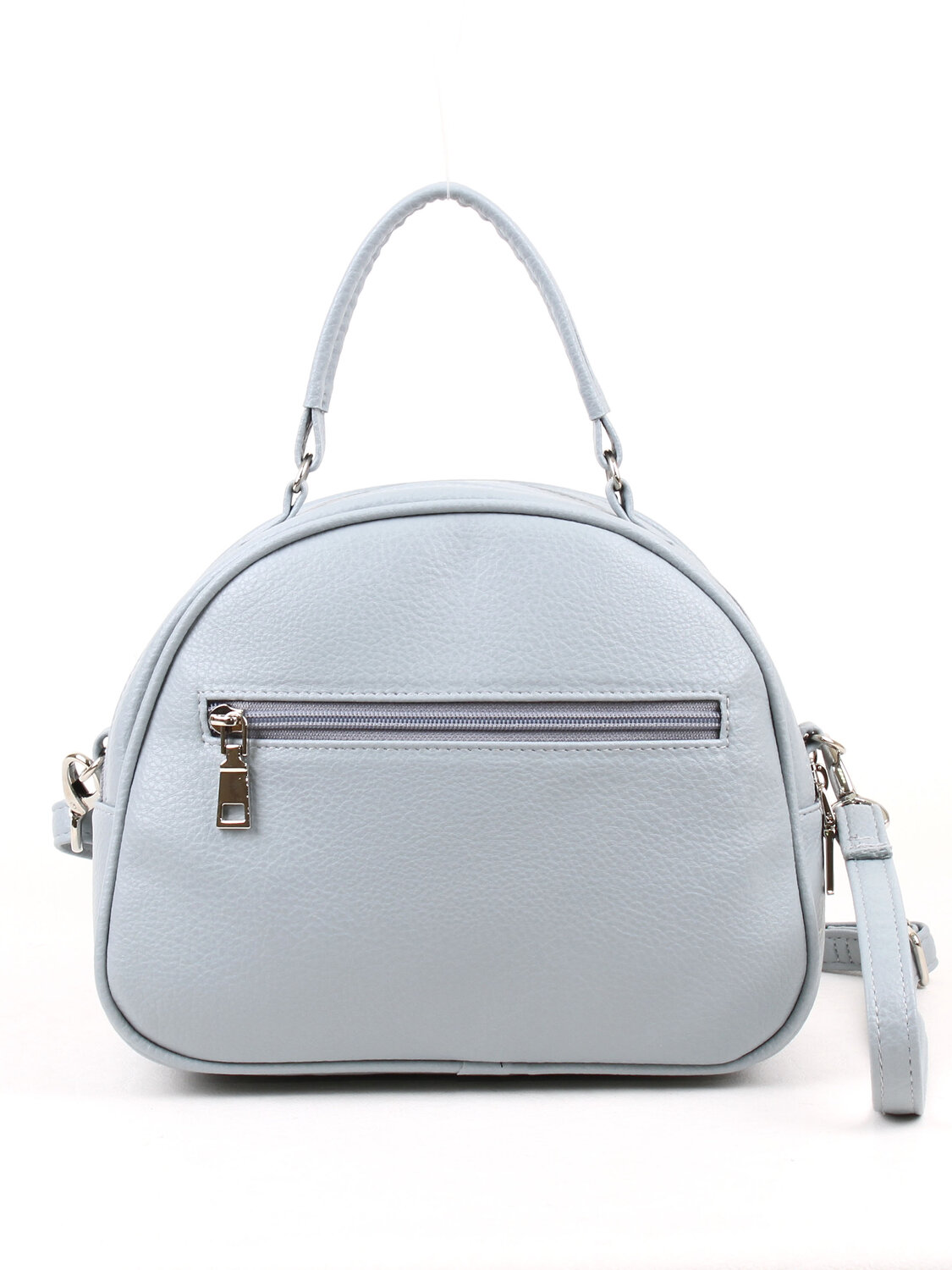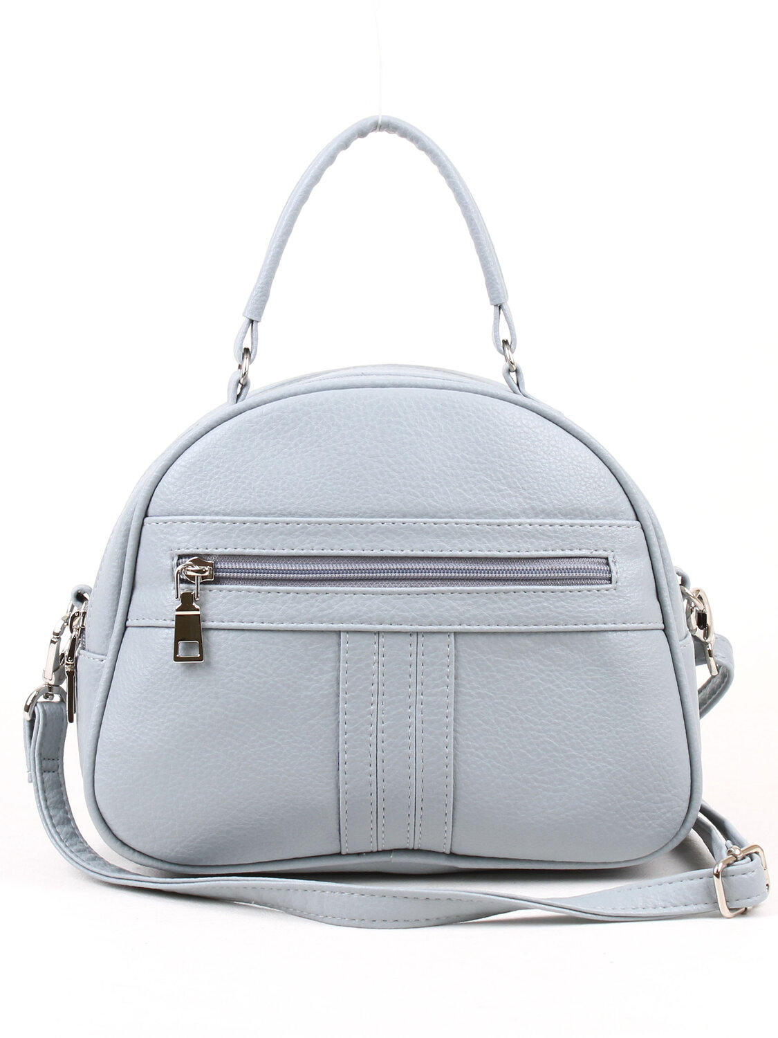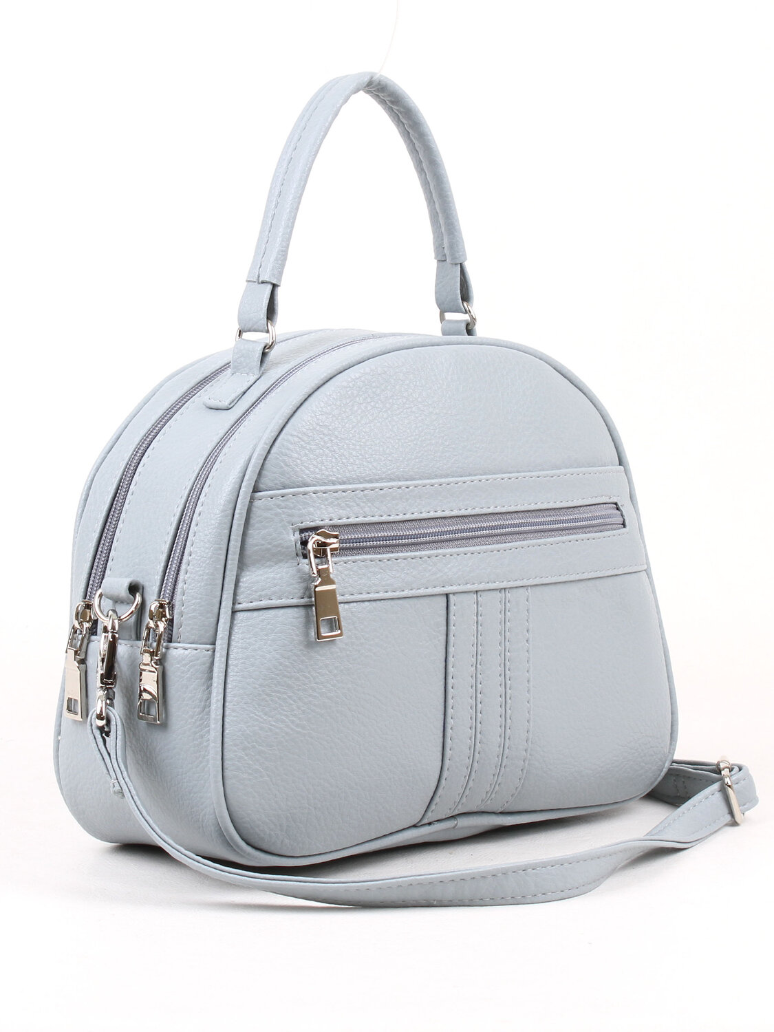 Сумка женская с одним отделением. Две молнии сверху сумки позволяют удобно пользоваться внутренними карманами. На передней и задней стенках снаружи - карманы на молнии . Высота ручки 9 см, максимальная длина съемного регулируемого ремня 120 см