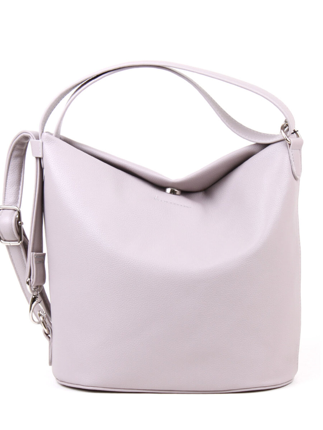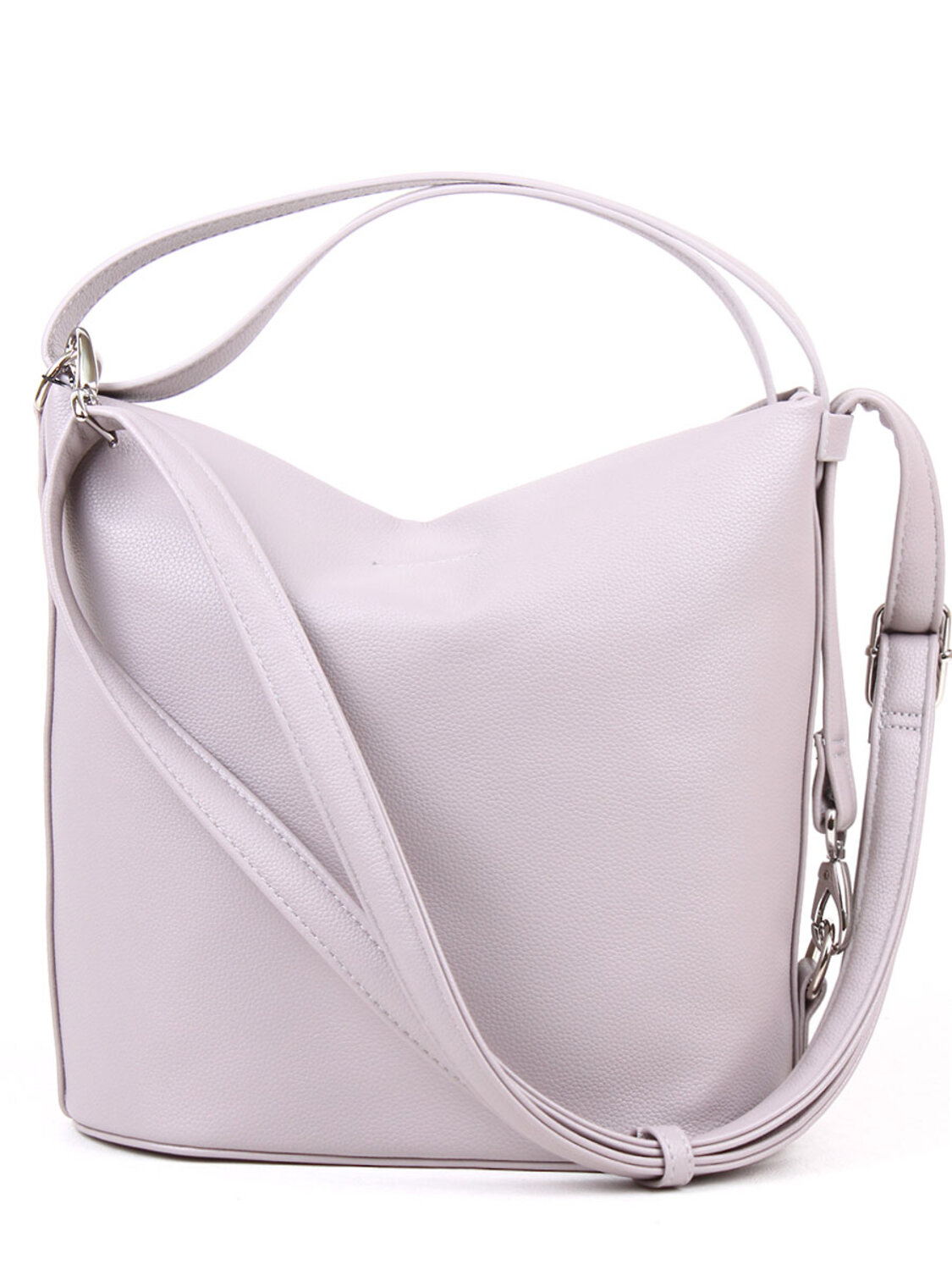 Мягкая женская сумка с одним отделением, закрывается на магнитную кнопку.Внутри - карман на молнии и два открытых кармана для мелочей. Высота ручки - 15 см. Съемный ремень регулируется по длине.