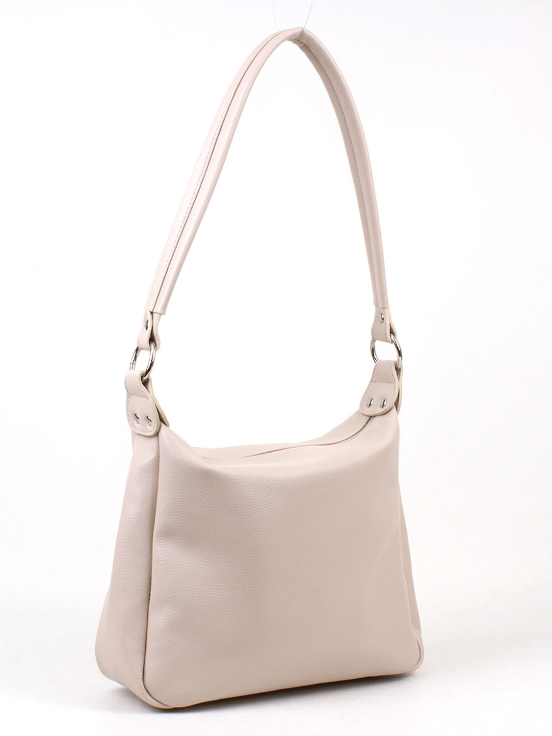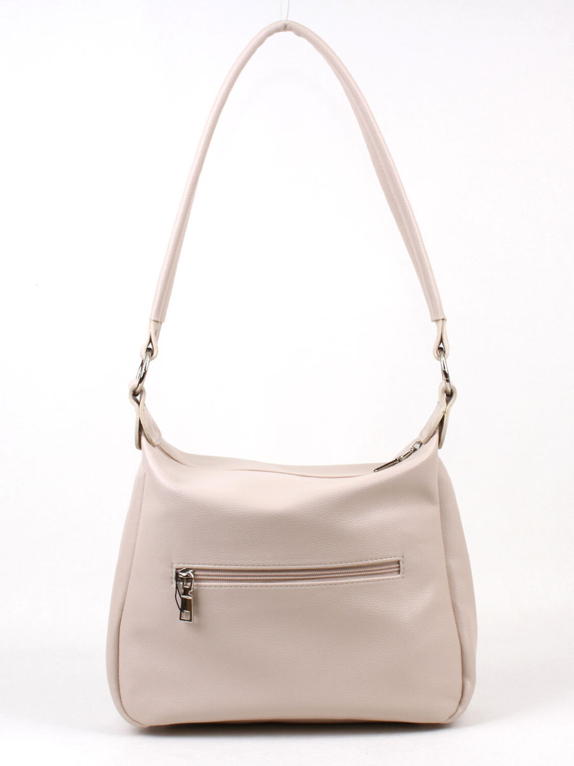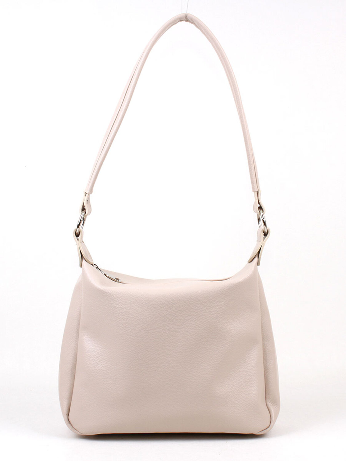 Сумка женская с одним отделением на молнии. На задней стенке - карман на молнии. Внутри также карман на молнии и два кармана для мелочей. Высота несьъемной ручки - 32 см. Съемный плечевой ремень регулируется по длине.