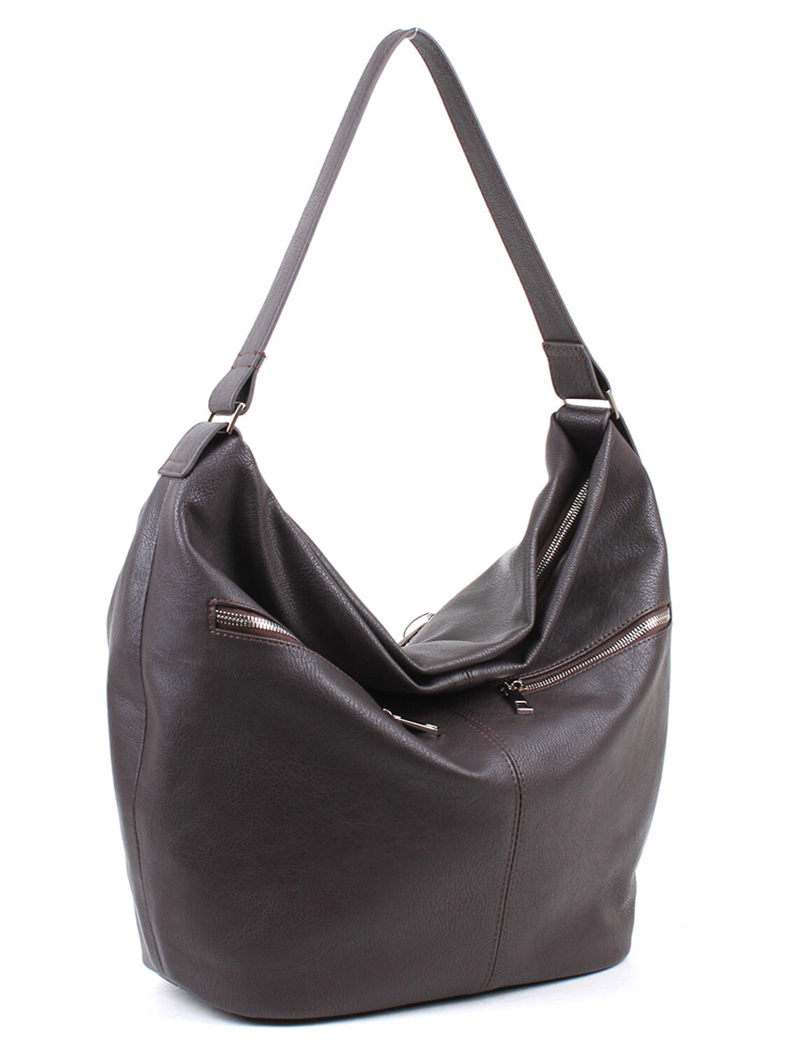 Одно отделение на молнии, внутри карман д/сотового и карман на молнии. На передней стенке два кармана на молнии, на задней - один карман на молнии. Высоа ручки 35см.