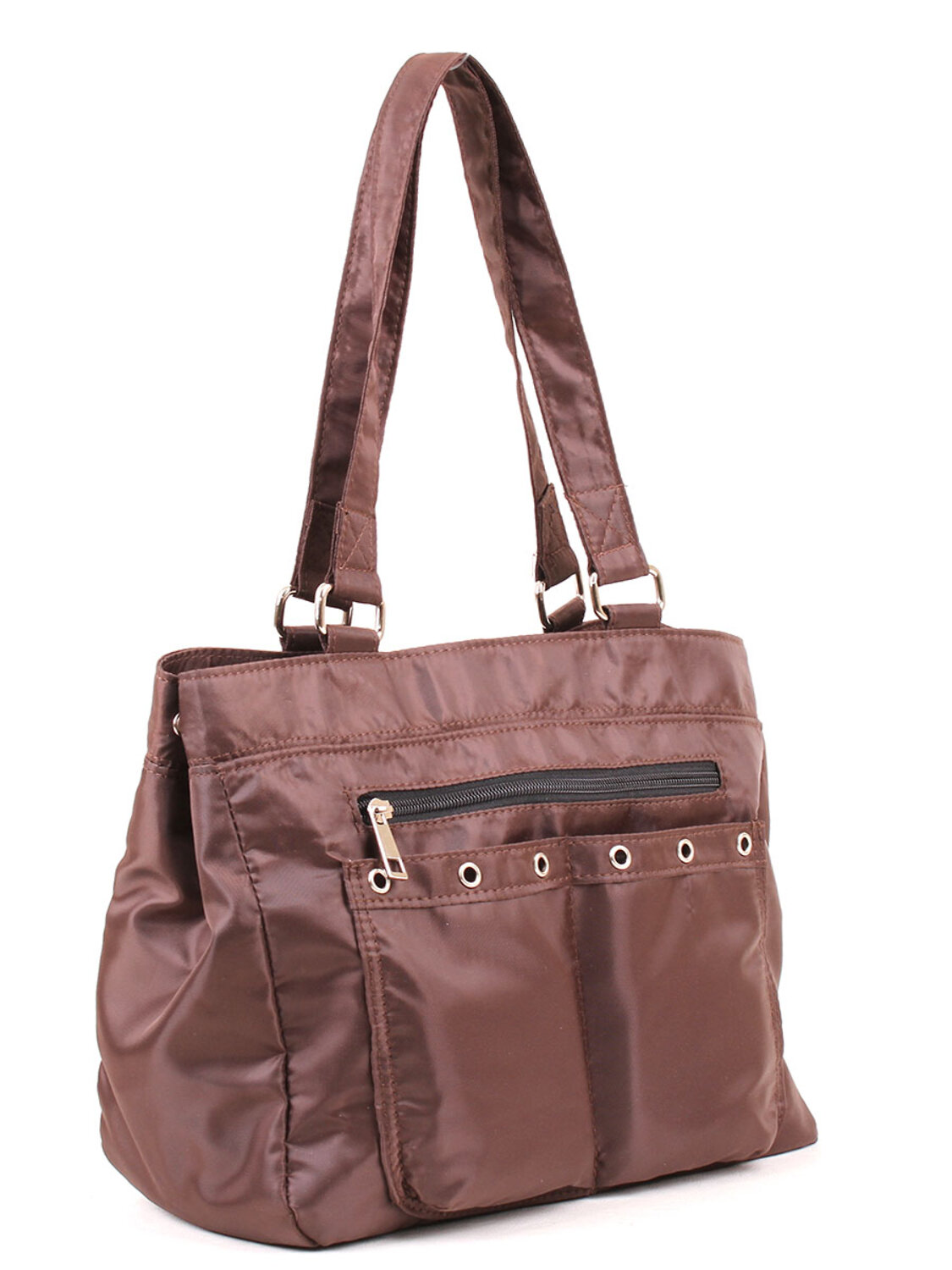 Сумка с одним отделением на молнии, внутри карман д/сотового, перегородка и карман на молнии. На передней стенке два открытых кармана и карман на молнии. На задней стенке карман на молнии. Высота ручек 25см. Съемный ремень 150см.