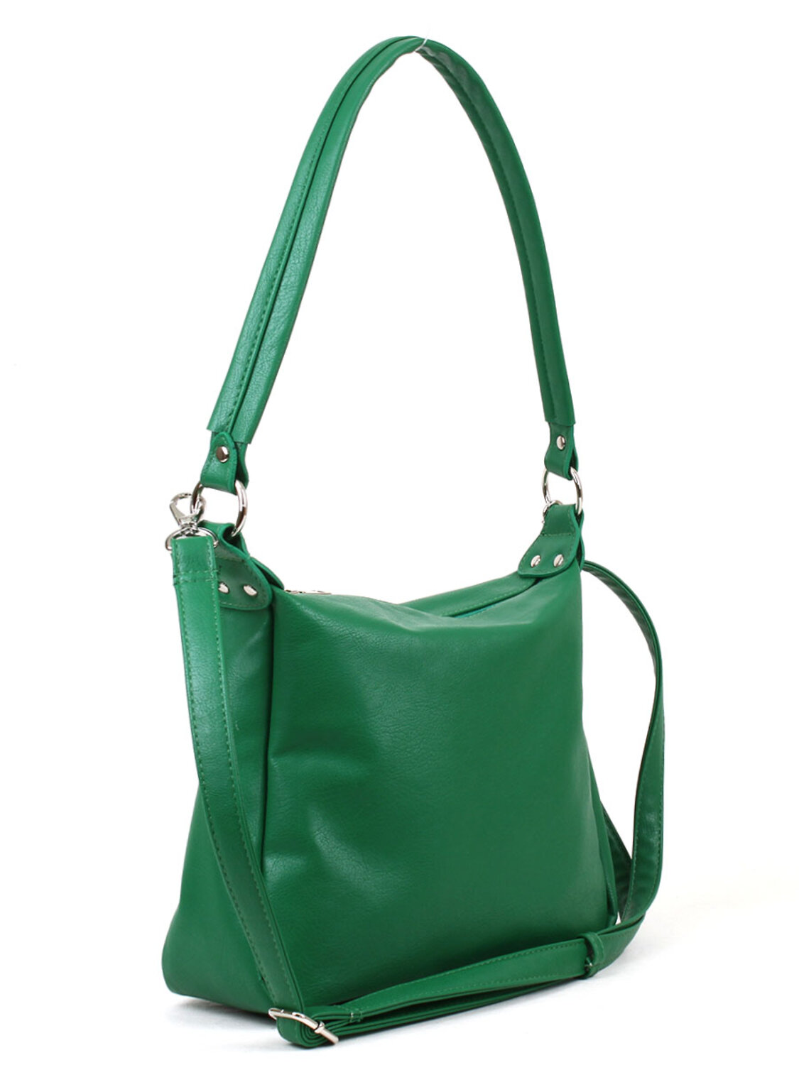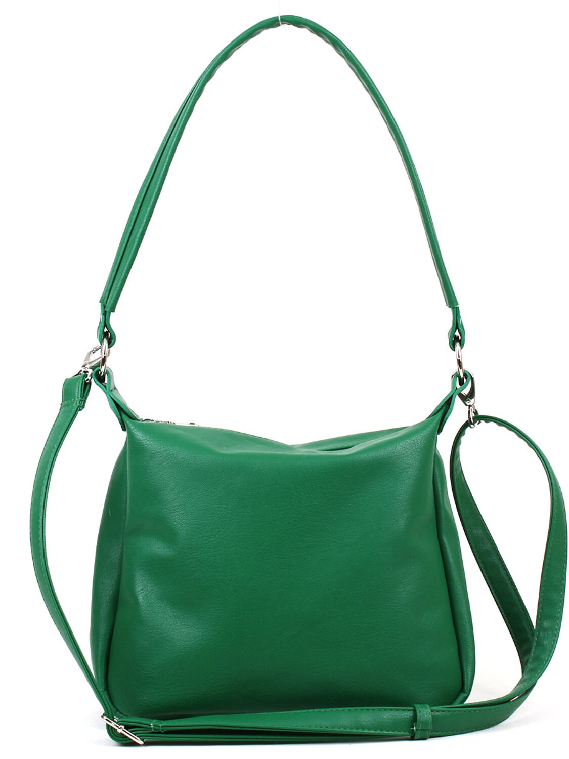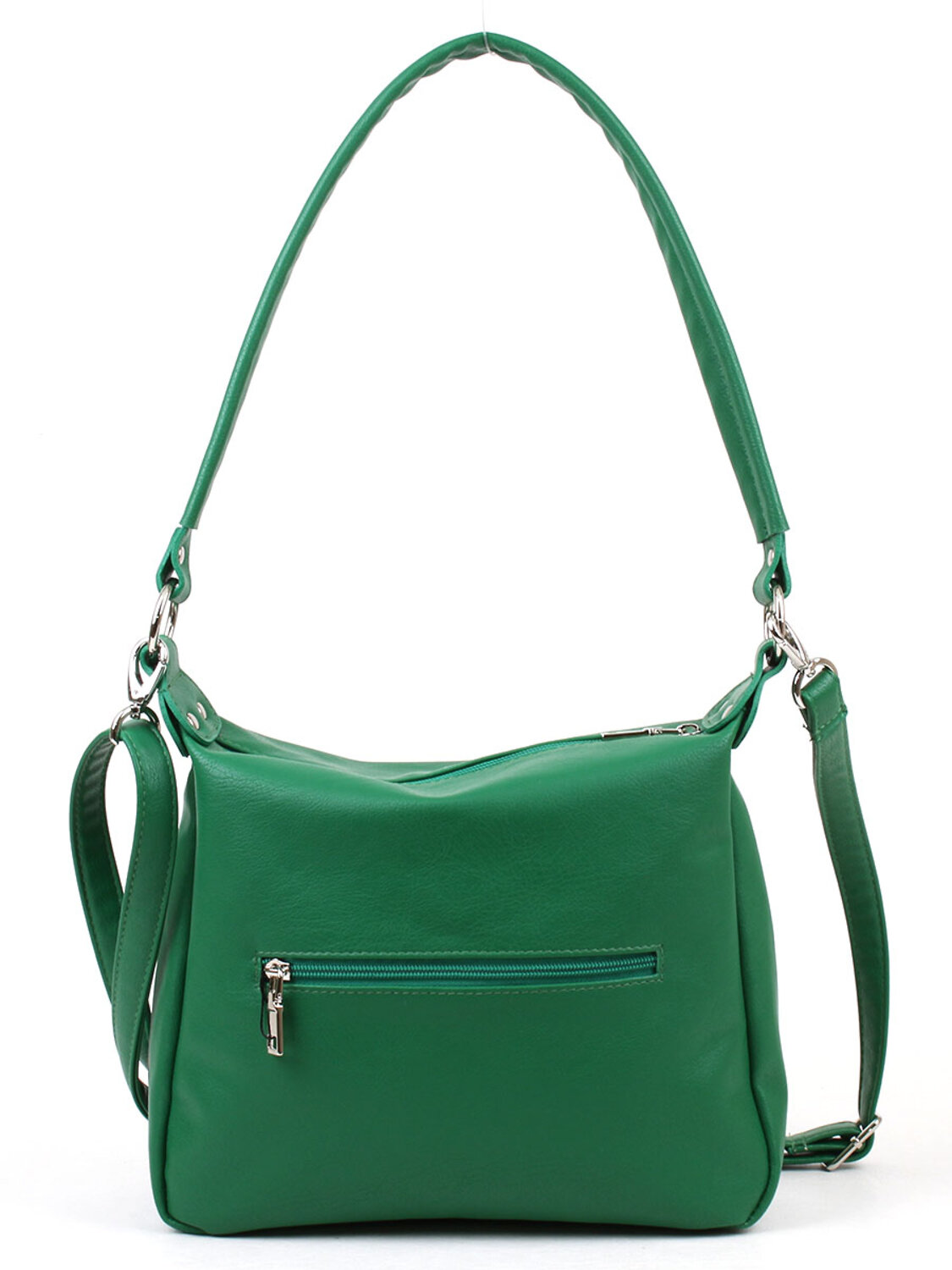 Сумка женская с одним отделением на молнии. На задней стенке - карман на молнии. Внутри также карман на молнии и два кармана для мелочей. Высота несьъемной ручки - 32 см. Съемный плечевой ремень регулируется по длине.