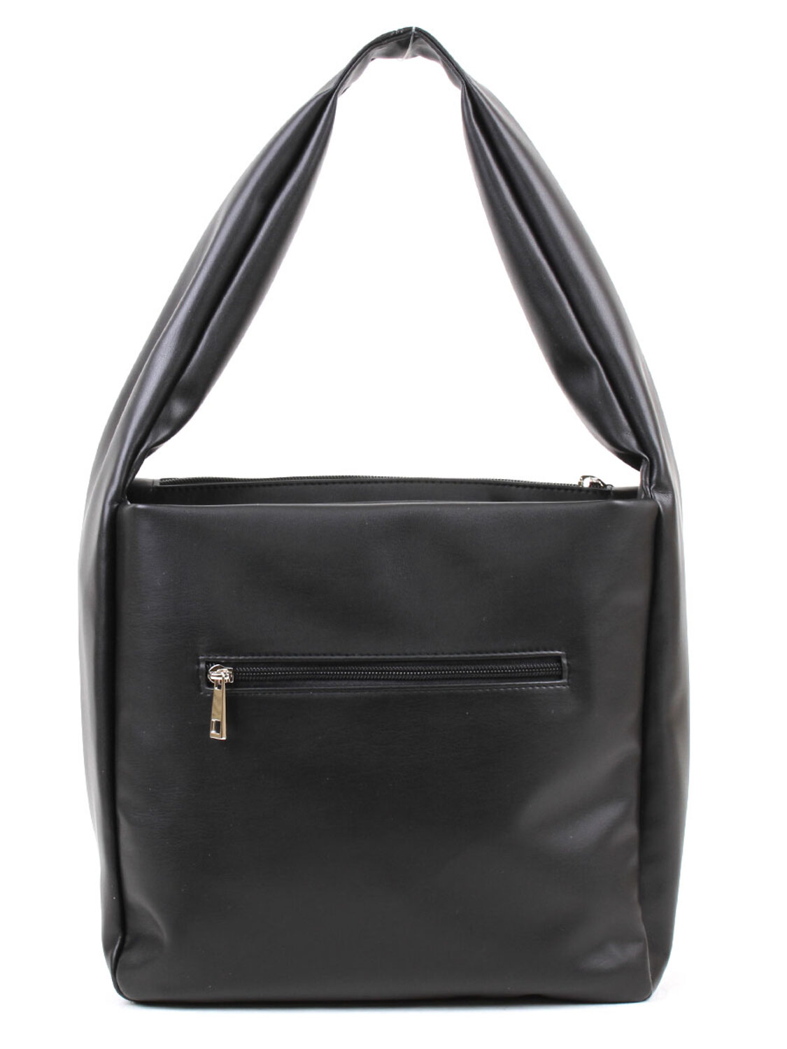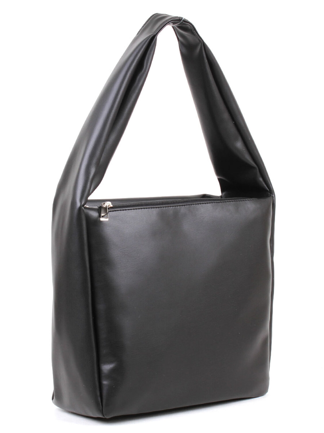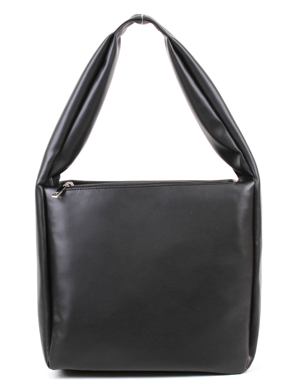 Женская сумка на плечо квадратного формата с двумя отделениями на молнии. На задней стенке - карман на молнии. Внутри большего отделения - карман на молнии и два кармашка для мелочей. Высота ручки - 24 см.