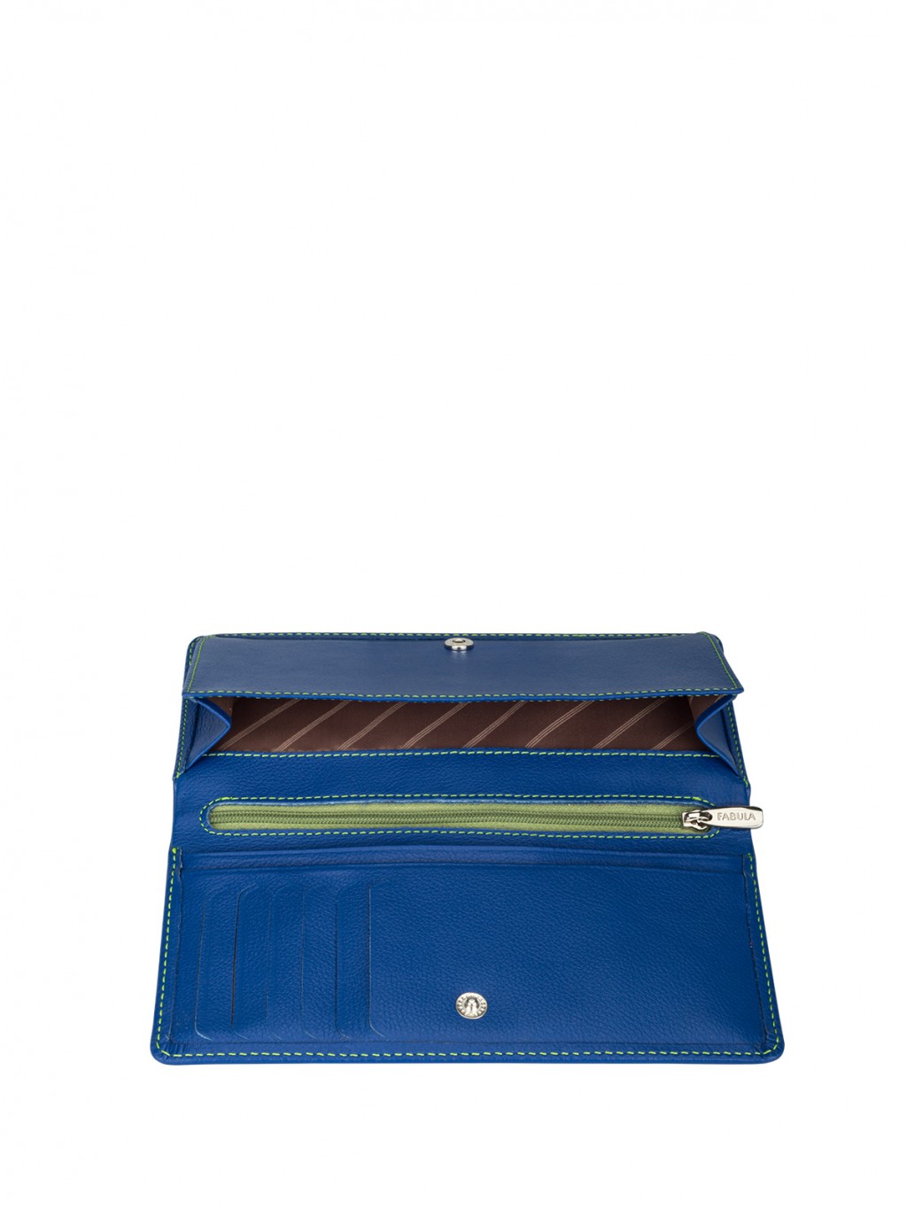 Женское полнокупюрное портмоне из коллекции выполнено из натуральной кожи. Закрывается на кнопку. Внутренний функционал: отделение для купюр, 2 скрытых кармана, отделение для мелочи на молнии, 6 карманов для кредитных карт. На внешней стороне отделение для чеков и бумаг. Цвет фурнитуры: никель. Отличительная черта: нашивка с логотипом "Fabula" на лицевой стороне изделия, контрастная отстрочка по краю изделия. Внешний размер: 185 х 95 х 25. Упаковка: подарочная коробка.