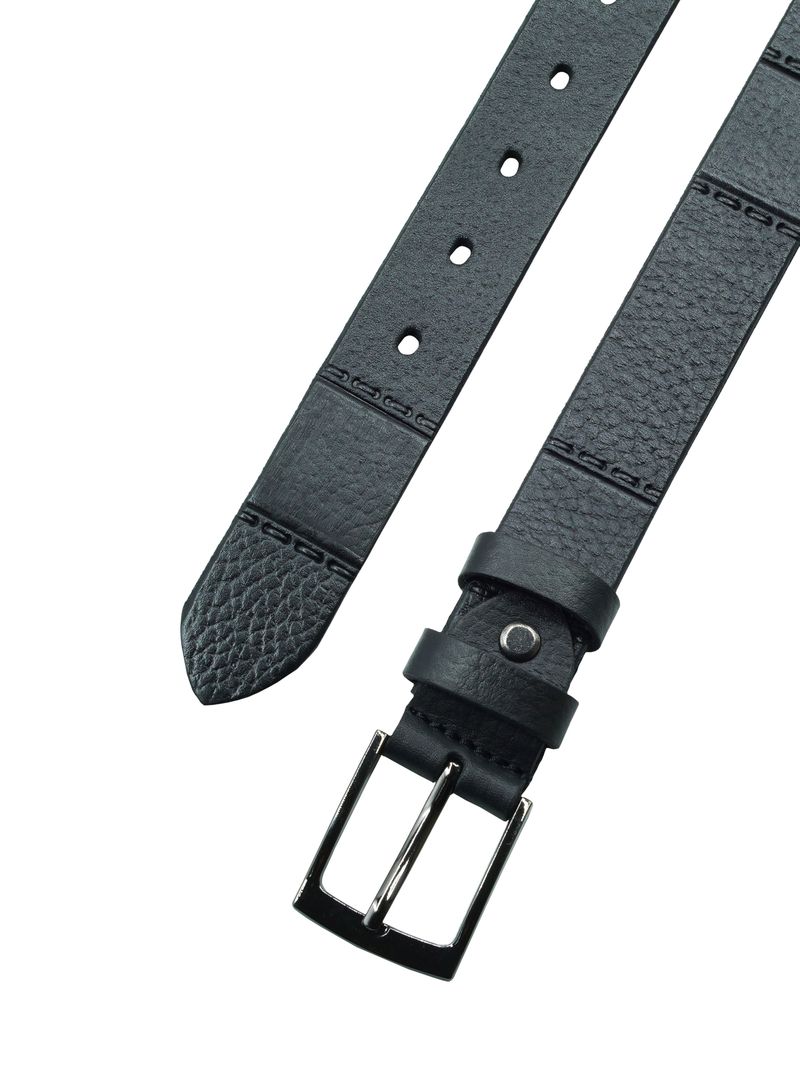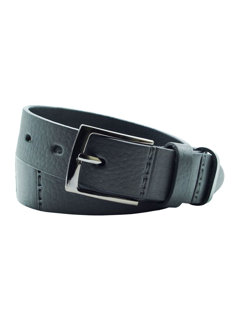 Детско-подростковый ремень из натуральной кожи Флотер для брюк черного цвета, ширина 30 мм.