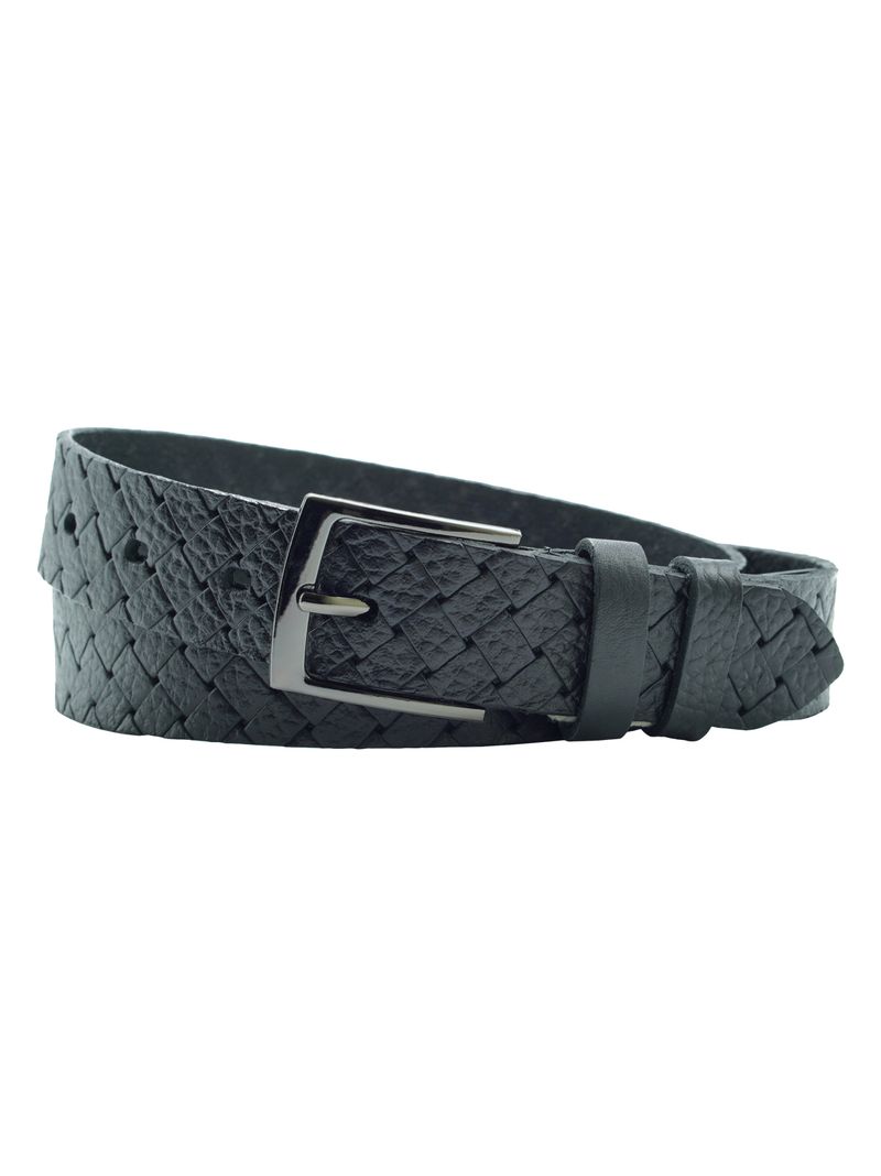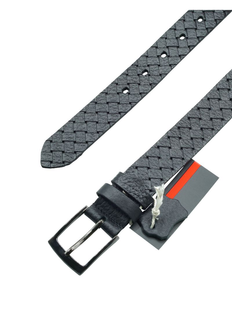 Детско-подростковый ремень из натуральной кожи Флотер для брюк черного цвета, ширина 30 мм.