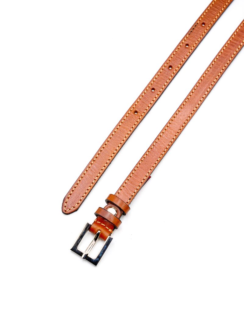 Женский узкий ремень из натуральной кожи апельсинового цвета, ширина 15 мм.