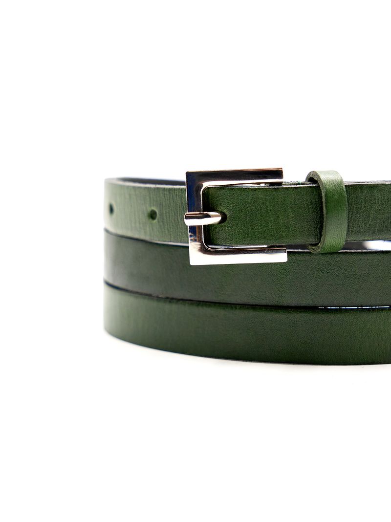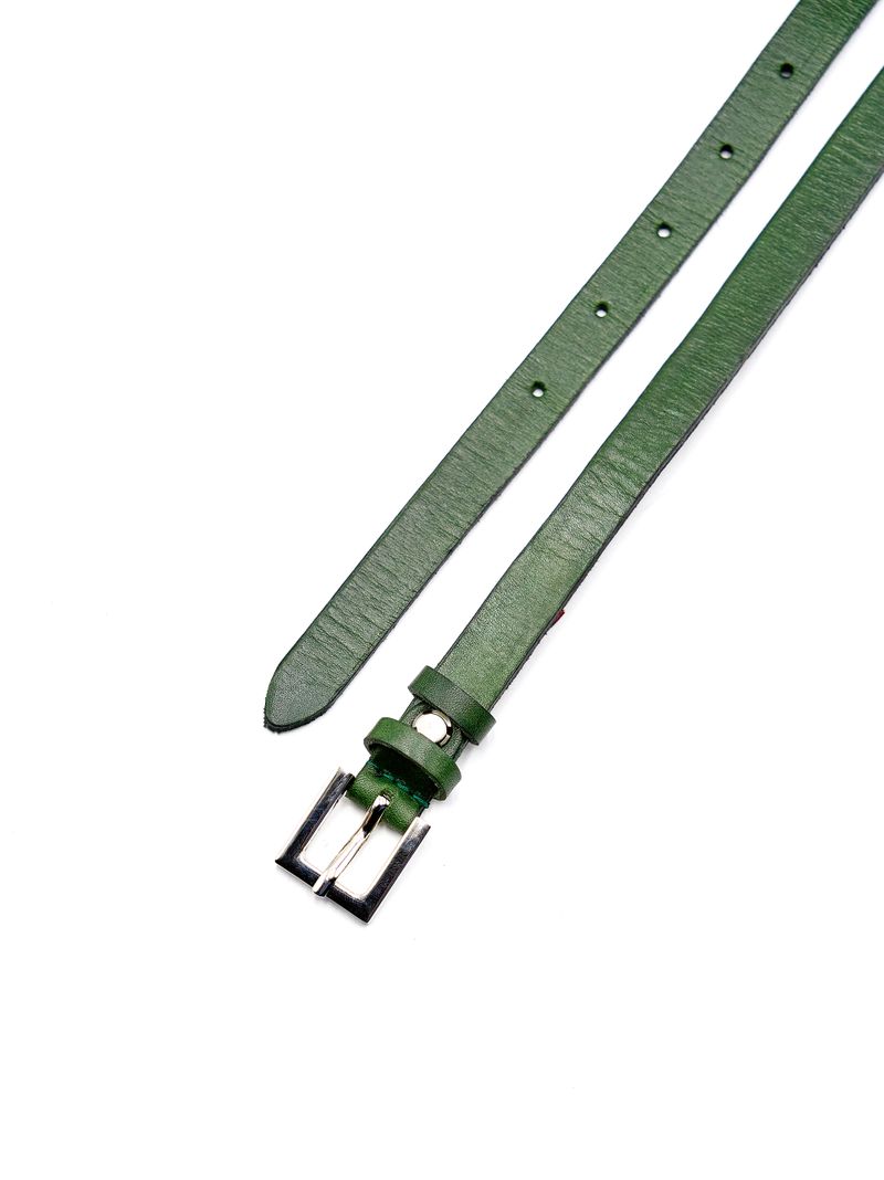 Женский узкий ремень из натуральной кожи зеленого цвета, ширина 15 мм.