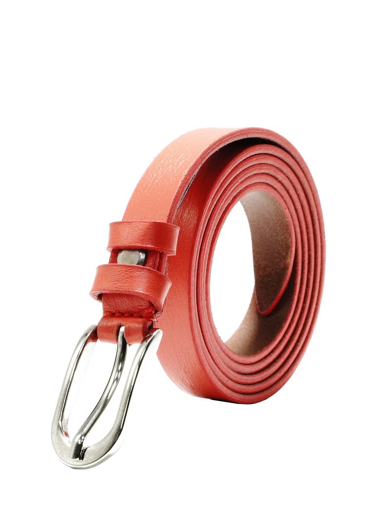 Женский узкий ремень из испанской натуральной кожи для платьев кораллового цвета, ширина 15 мм.