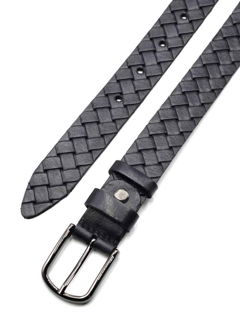 Женский ремень из натуральной кожи Флотер для брюк черного цвета, ширина 25 мм.