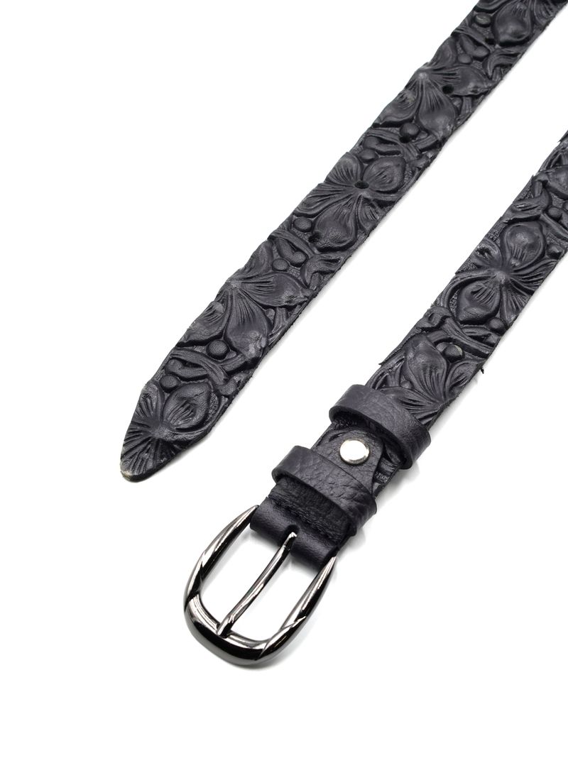 Женский ремень из натуральной кожи Флотер для брюк черного цвета, ширина 25 мм.