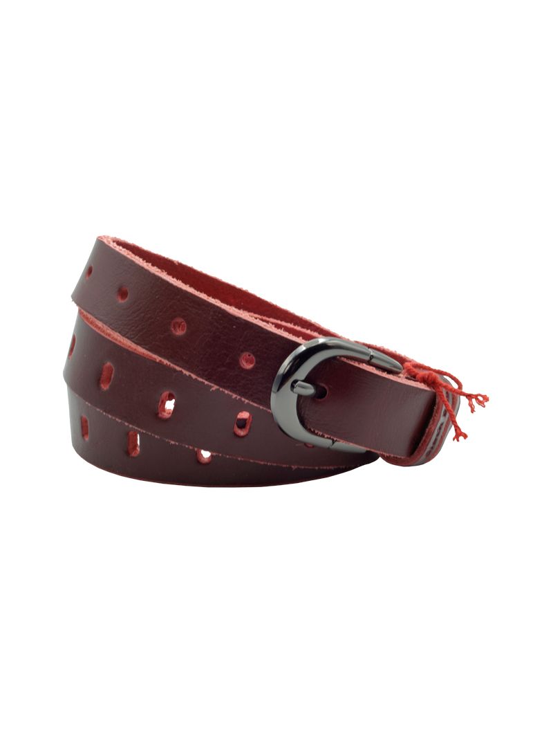 Женский ремень из итальянской натуральной кожи для джинсов бордового цвета, ширина 25 мм.