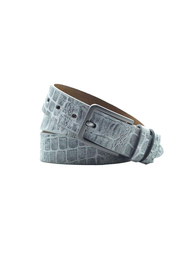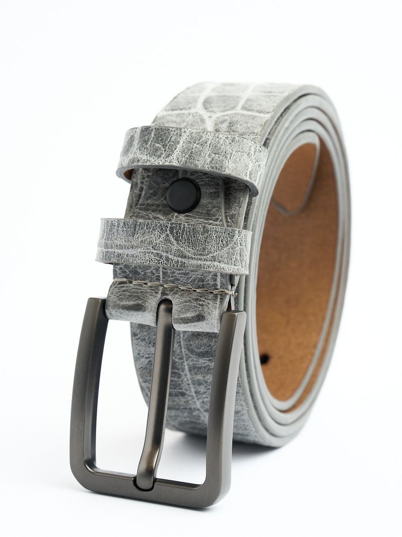 Изделие изготовлено из двух слоев, верхний слой- итальянская кожа с тиснением под крокодила, нижний- вощеный спилок. Бока ремня окрашены эластичной краской в тон цвета кожи.