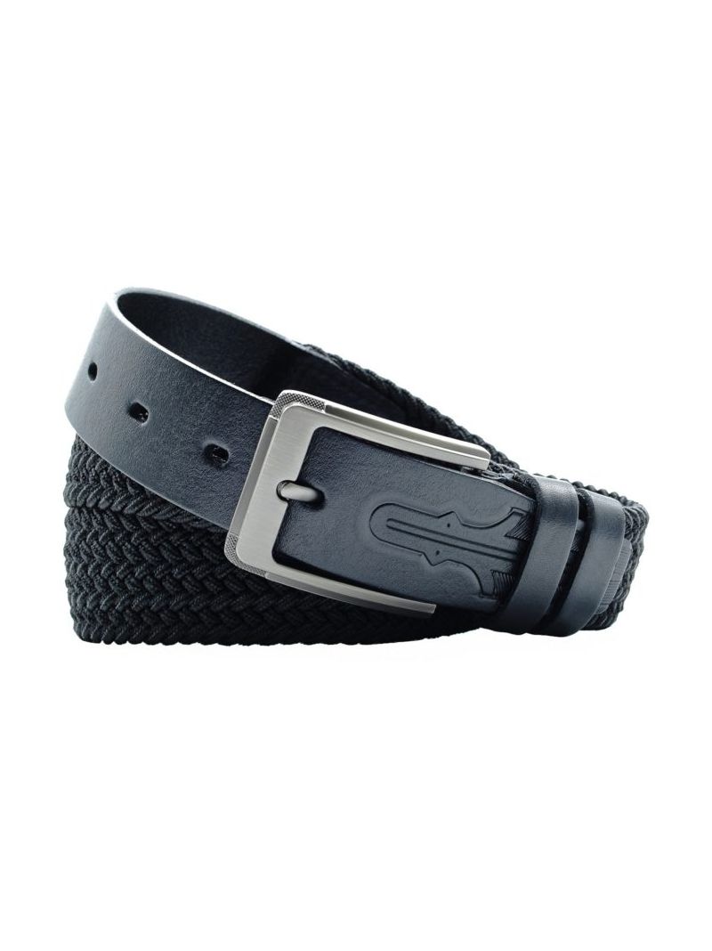 Универсальный ремень, мужской и женский, комбинированный из текстиля и натуральной кожи для джинсов черного цвета, ширина 35 мм.