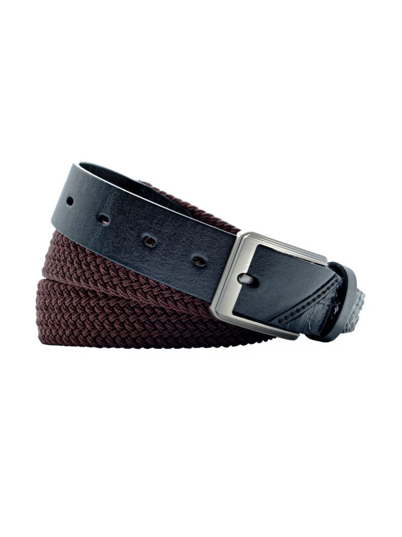 Универсальный ремень, мужской и женский, комбинированный из текстиля и натуральной кожи для джинсов коричневого цвета, ширина 35 мм.