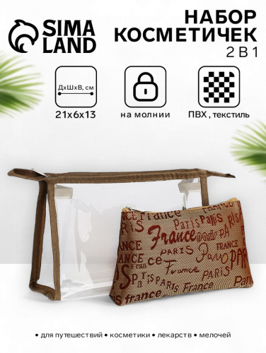 Набор простых косметичек 2 в 1 на молниях, с надписями, бежевый