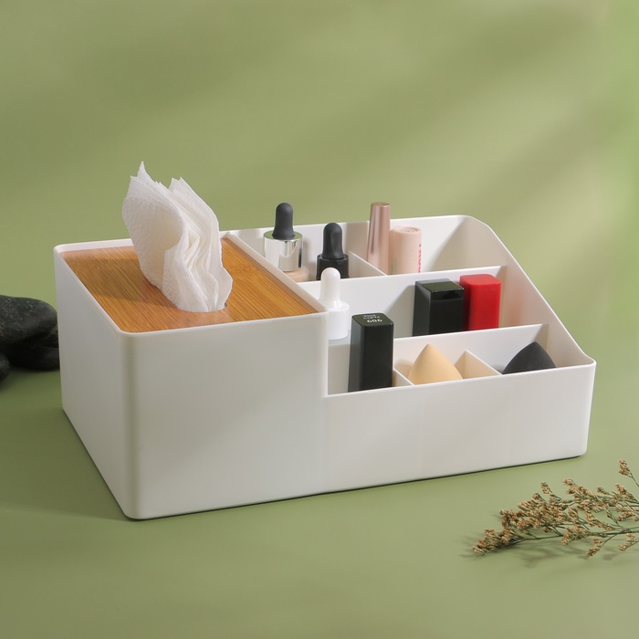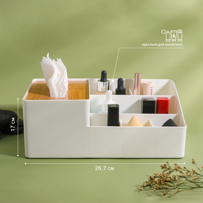 * Максимальная функциональность: органайзер подходит не только для косметики, но и для салфеток и других аксессуаров, что делает его универсальным решением для любого дома.