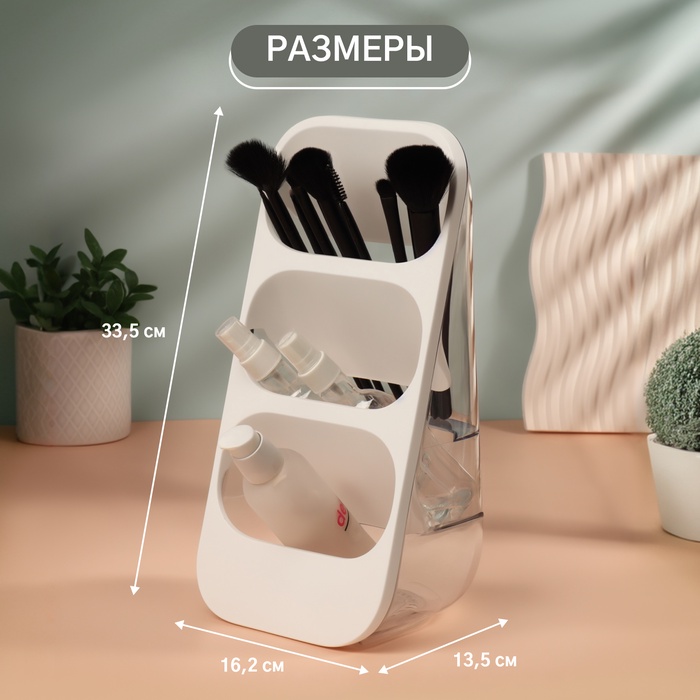 * Оптимизация пространства: три секции обеспечивают удобное хранение и организацию различных косметических средств.