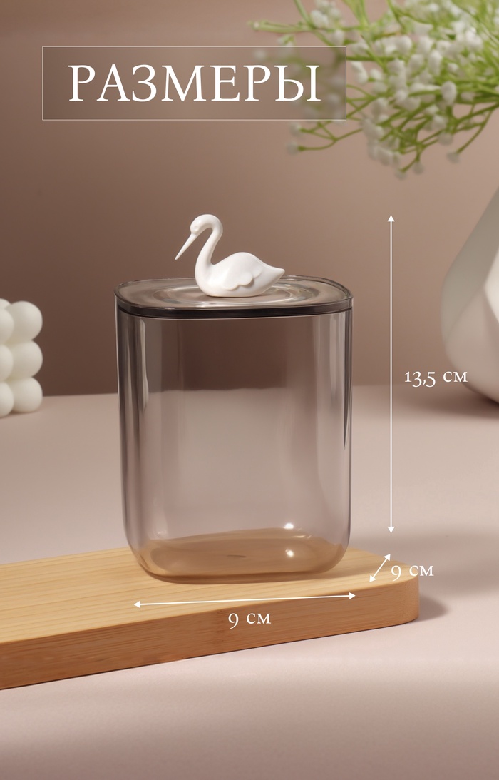 Органайзер для хранения «Пеликан», с крышкой, 9×9×13.5 см, белый, прозрачный