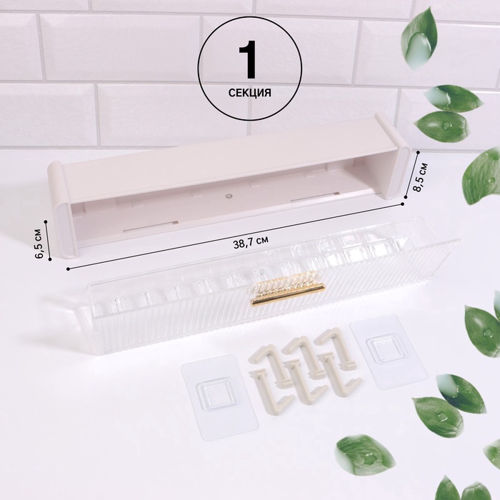 Органайзер настенный, 1 секция, с клеевыми крючками, 38.7×8.5×6.5 см, белый