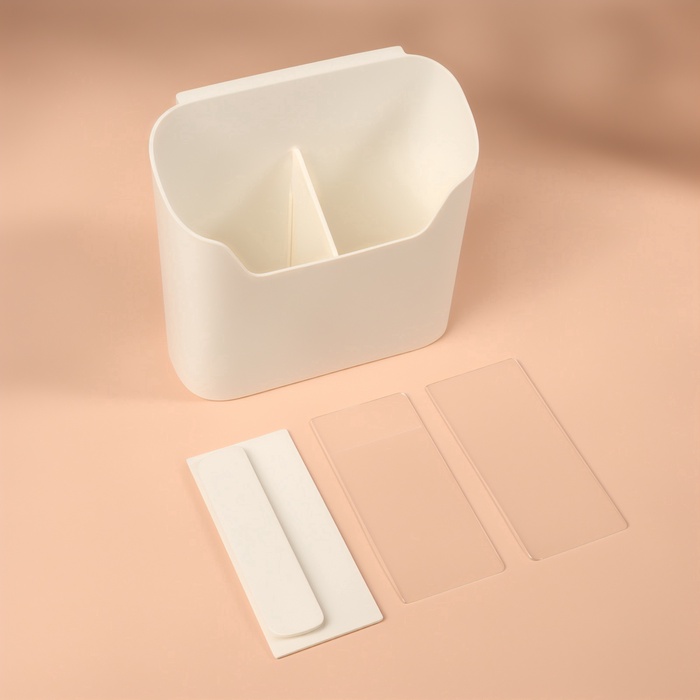 Органайзер изготовлен из высококачественного пластика, обеспечивая его долговечность и устойчивость к влаге. Белый цвет добавит свежести и гармонии в ваш интерьер, подходя к любому стилю. Благодаря клеевой основе, он легко крепится на стену, не требуя сверления или дополнительных инструментов, и помогает экономить место в шкафах и на полках.