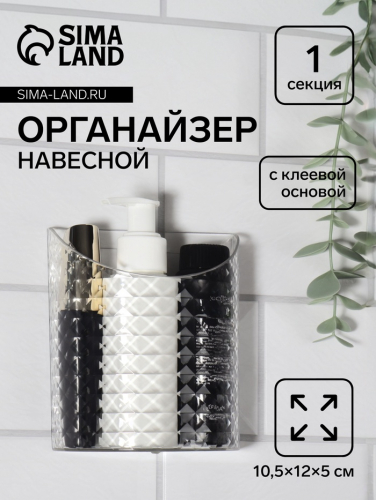 Органайзер настенный «Бриллиант», 1 секция, с клеевой основой, 10.5×12×5 см, прозрачный