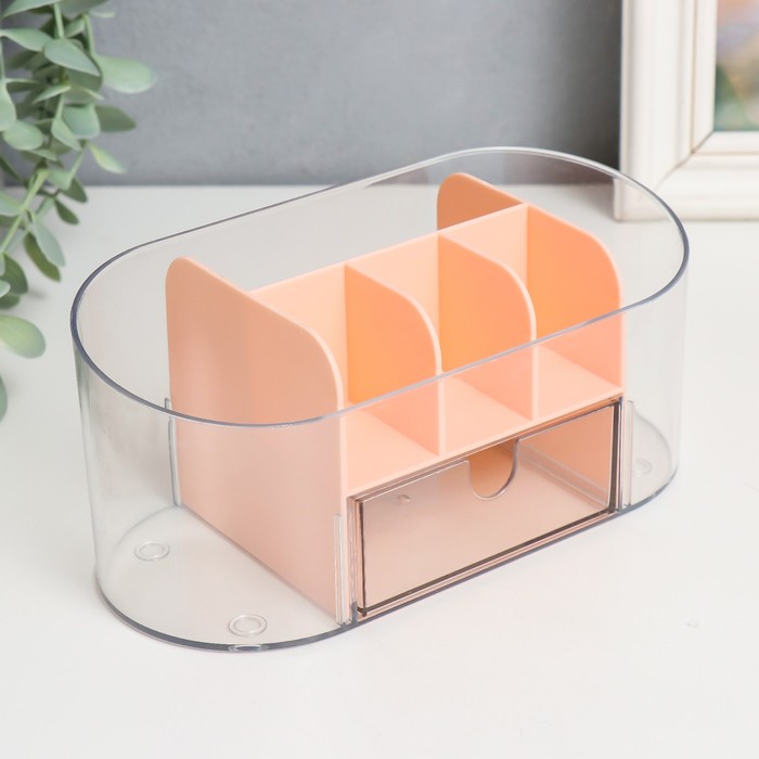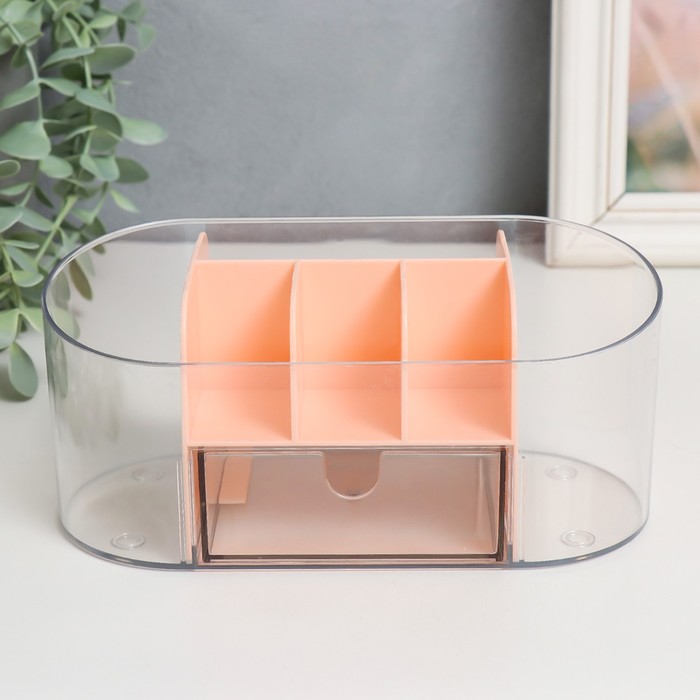 Шкатулка - органайзер для косметики «Овальная с ящичком», пластик, розовая, 8.5×19.5×9 см