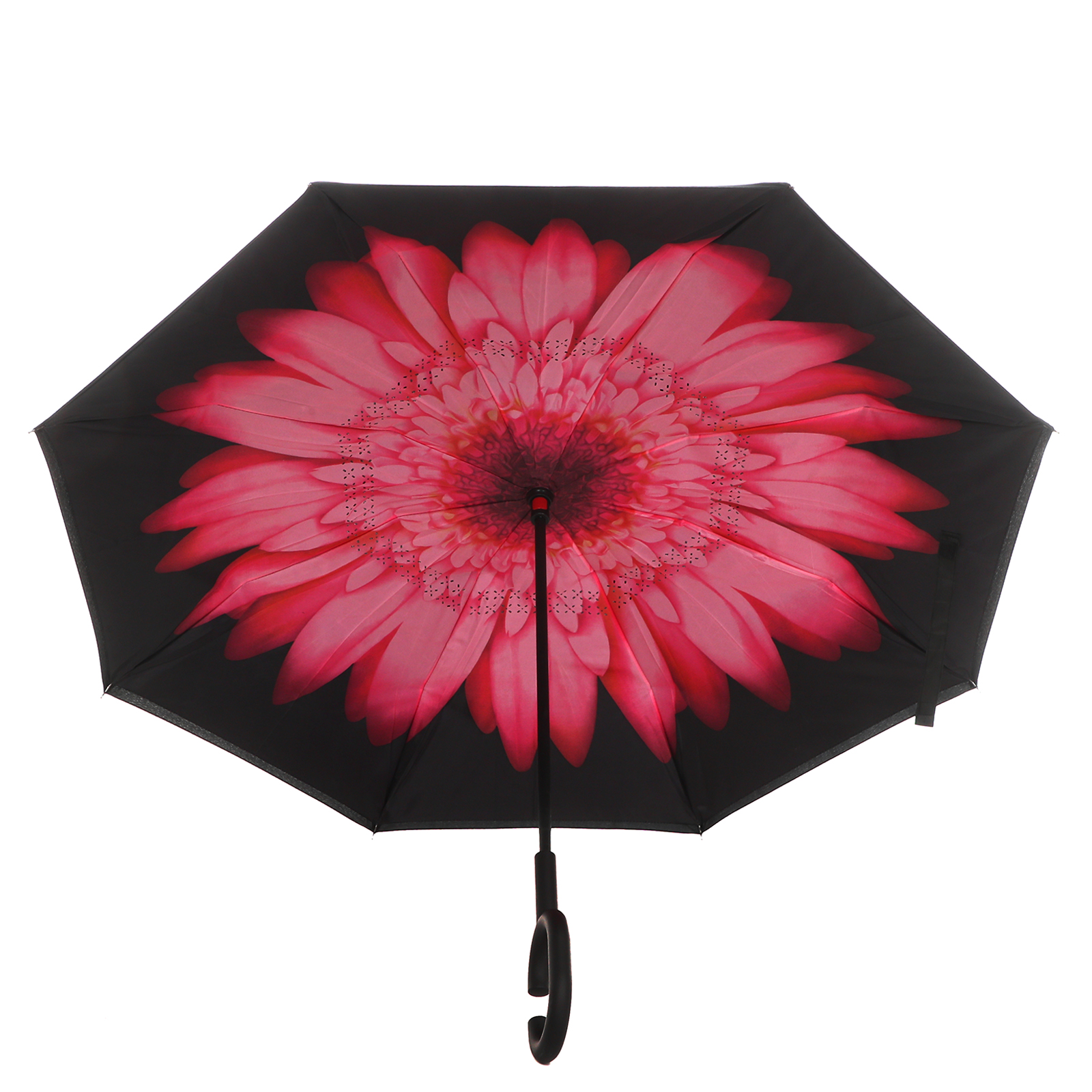 Крупная ручка С-образной формы удобна, чтобы нести зонт одной рукой: вы можете буквально «повесить» открытый зонт на запястье, чтобы освободить руку для смартфона или вещей. Ручка выполнена из ABS пластика, она устойчива к трещинам и сколами, ударопрочная и долговечная. Благодаря матовой поверхности soft touch ручку приятно держать в руках, она не скользит.