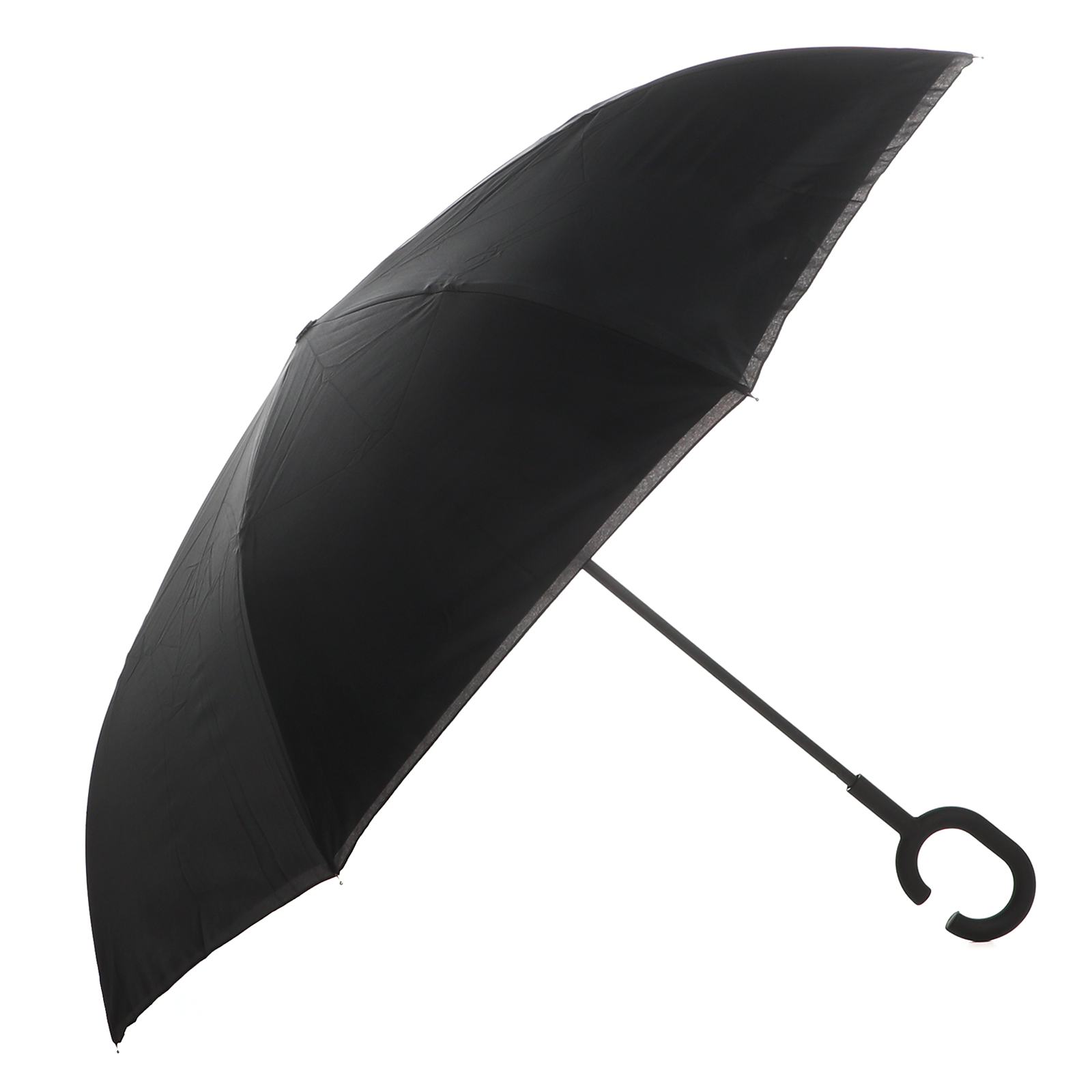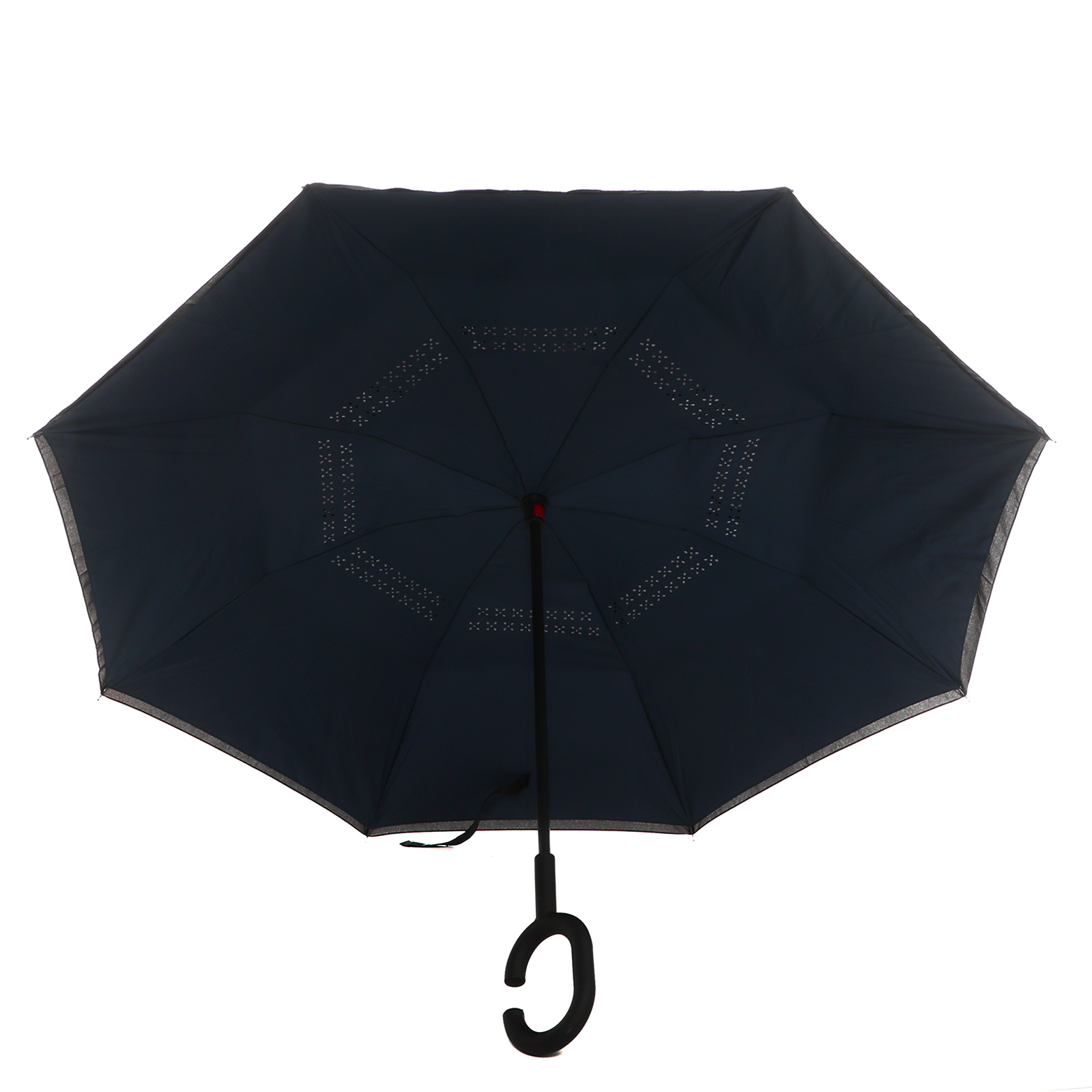Механический зонт Tendance обратного закрытия с 8 спицами. Большой двухслойный купол сделан из прочного текстиля эпонж 190T. Вода не задерживается на материале, собираясь в капли и легко скатываясь с купола. Двухслойный купол — ваша дополнительная защита от дождя и ветра. Железные спицы и стержень делают аксессуар надежным и долговечным. Зонт защитит вас не только когда открыт, но и когда сложен. Купол закрывается не к себе, а от себя, поэтому мокрая ткань зонта оказывается внутри, а сухая внутренняя — снаружи. Капли не будут стекать на ручку зонта и ваши руки. Зонт с реверсивным сложением особенно удобен для автомобилистов: вам не придется сначала закрывать зонт, а потом садиться в салон, закрыть зонт удобно уже сидя в автомобиле. Сложенный зонт можно повесить за ручку или поставить на пол для просушки, дополнительная опора ему не нужна.
