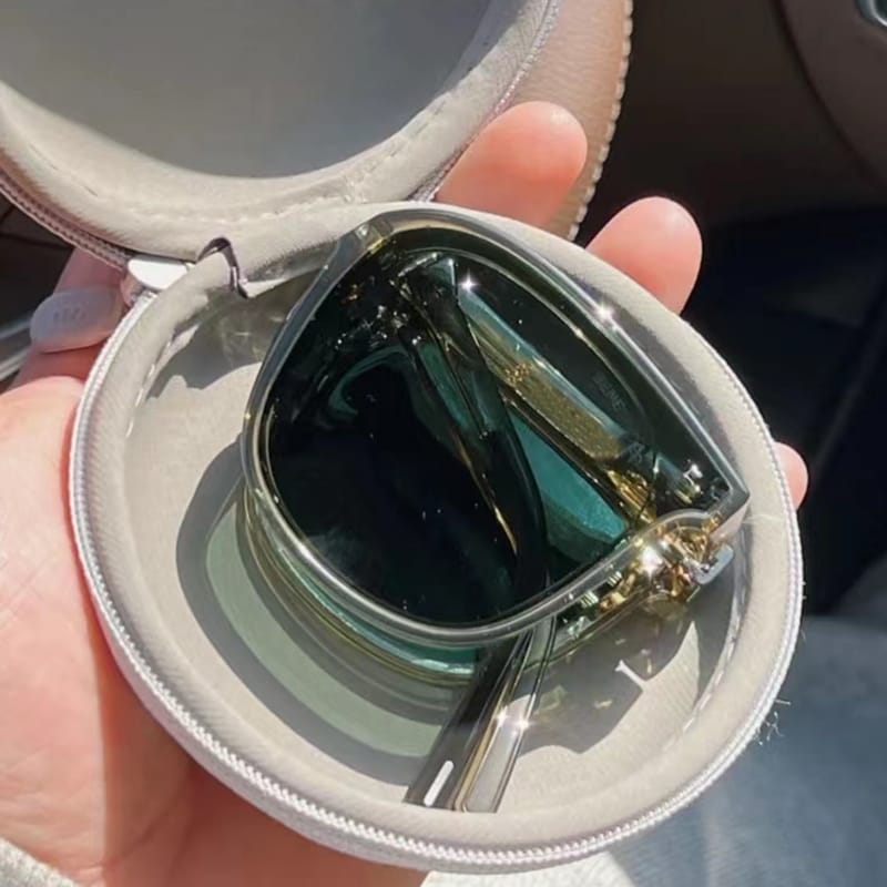 Женские солнцезащитные складные очки с чехлом зелёные