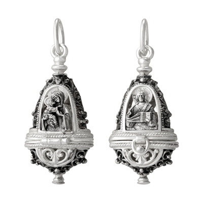 2-061-3 Ладанка (Спаситель, БМ Владимирская) из серебра частичное чернение литье