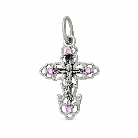 3-057-3 ам Крест с фианитом выборочно черненный серебро 925*