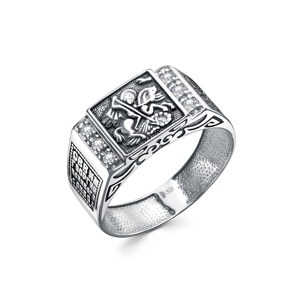60-0758 Кольцо (Георгий Победоносец) из серебра ч/ч литьё с фианитом