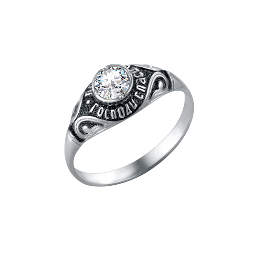 8-037-3 Кольцо с фианитом выборочное чернение серебро 925*