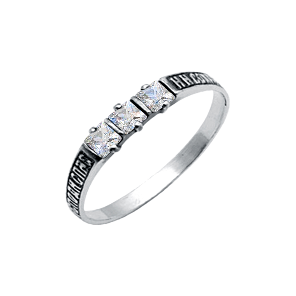 8-058-3 Кольцо с фианитом выборочное чернение серебро 925*