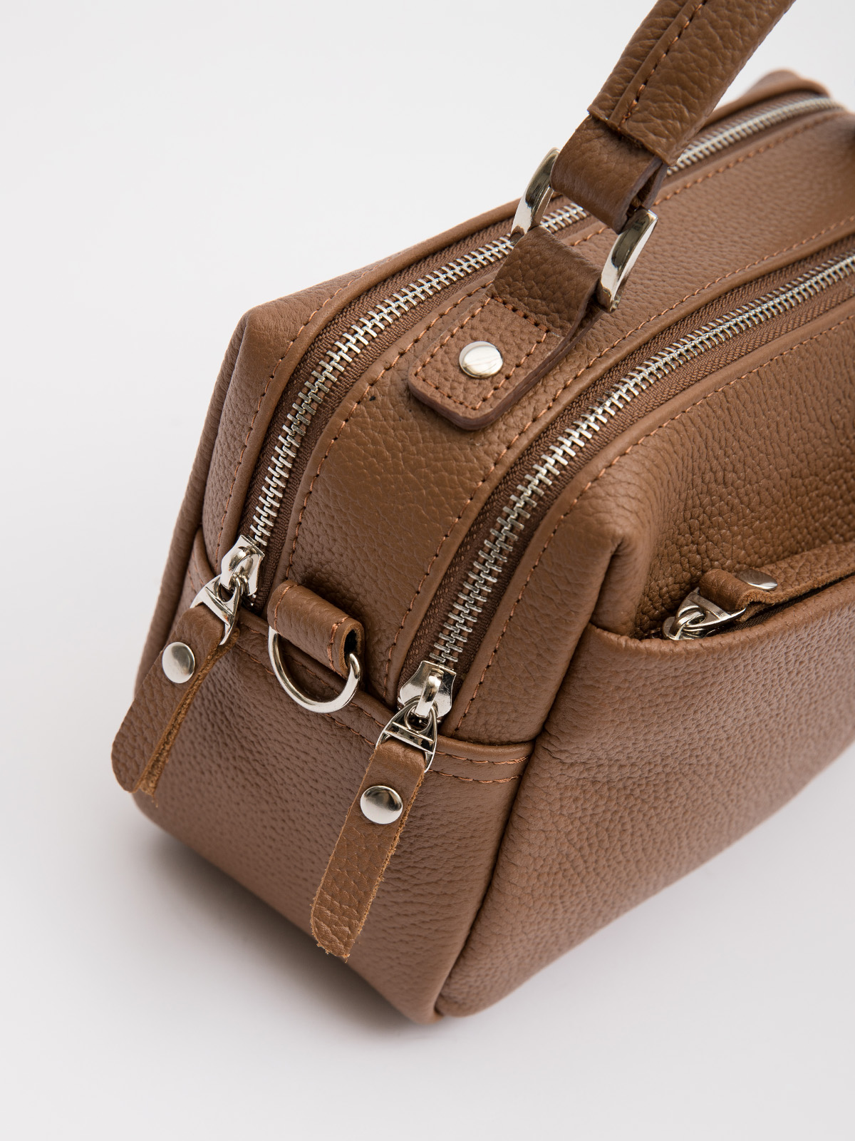 Практичная сумка из натуральной кожи вмещает в себя все необходимое. В ней найдется место для косметики, документов, ключей, телефона, кошелька и прочих нужных вещей и мелочей. Это идеальный выбор для деловой встречи и повседневного использования - эта сумка станет незаменинм аксессуаром в Вашем гардеробе!