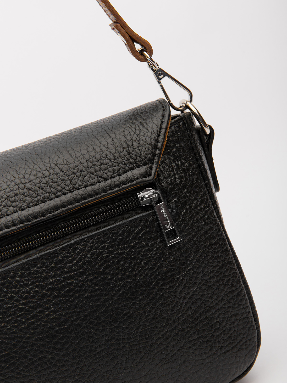 Миниатюрный кросс-боди в стиле S.Lavia из двух видов натуральной кожи с благородной отделкой оттенка camel. Компактная модель с короткой ручкой и регулируемым ремнём на кобурных кнопках предлагает два варианта ношения. Двойная защита основного отделения: клапан на магнитах и молния. Внутри — два стандартных кармана, снаружи — удобный задний карман на молнии. Переднюю часть украшает металлический декоративный элемент. Идеальный выбор для тех, кто ценит лаконичность, функциональность и узнаваемые детали бренда.