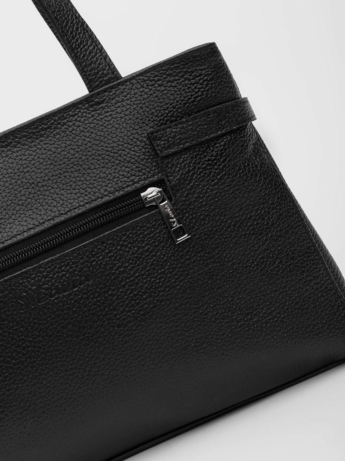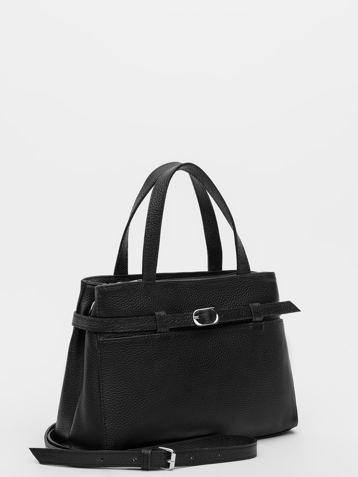 Элегантный тоут размера М, выполненный из натуральной кожи, с трапециевидным силуэтом и декоративным ремешком, опоясывающим корпус. Основное отделение с перегородкой на молнии и двумя стандартными карманами обеспечивает удобную организацию пространства. Укороченные ручки и длинный регулируемый ремень на карабинах предлагают несколько вариантов ношения. Задний карман на молнии с тиснением добавляет практичности и стиля. Идеальный выбор для тех, кто ценит лаконичный дизайн с продуманными деталями.