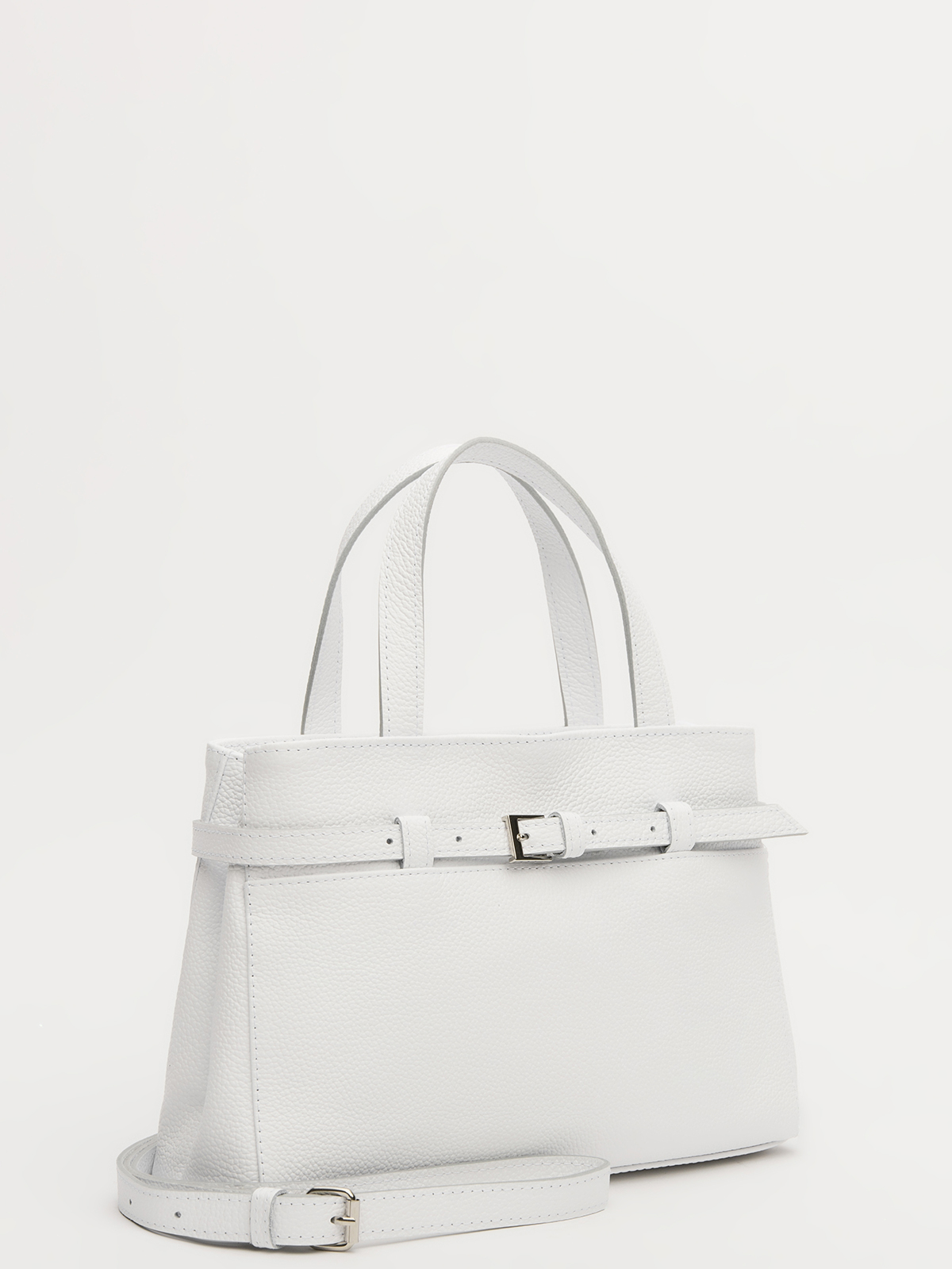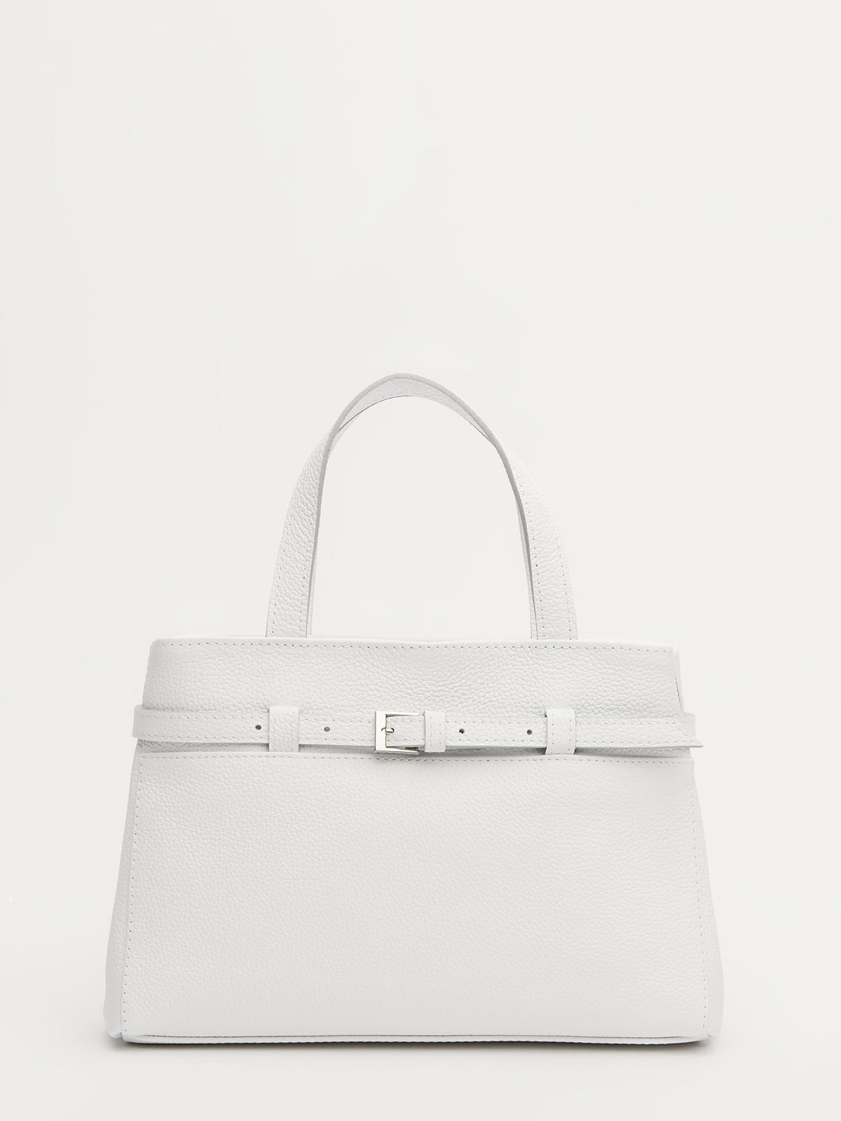 Элегантный тоут размера М, выполненный из натуральной кожи, с трапециевидным силуэтом и декоративным ремешком, опоясывающим корпус. Основное отделение с перегородкой на молнии и двумя стандартными карманами обеспечивает удобную организацию пространства. Укороченные ручки и длинный регулируемый ремень на карабинах предлагают несколько вариантов ношения. Задний карман на молнии с тиснением добавляет практичности и стиля. Идеальный выбор для тех, кто ценит лаконичный дизайн с продуманными деталями.