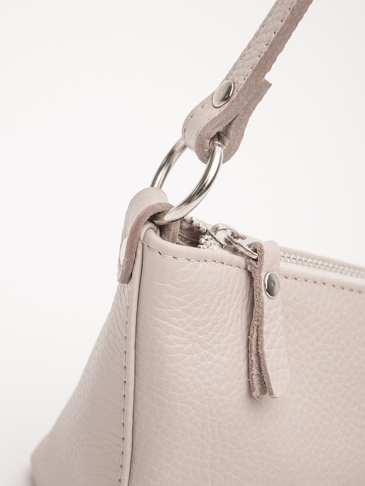 Короткий ремень – функциональный элемент в сумке, также служит декором, благодаря шлевкам и фурнитуре.