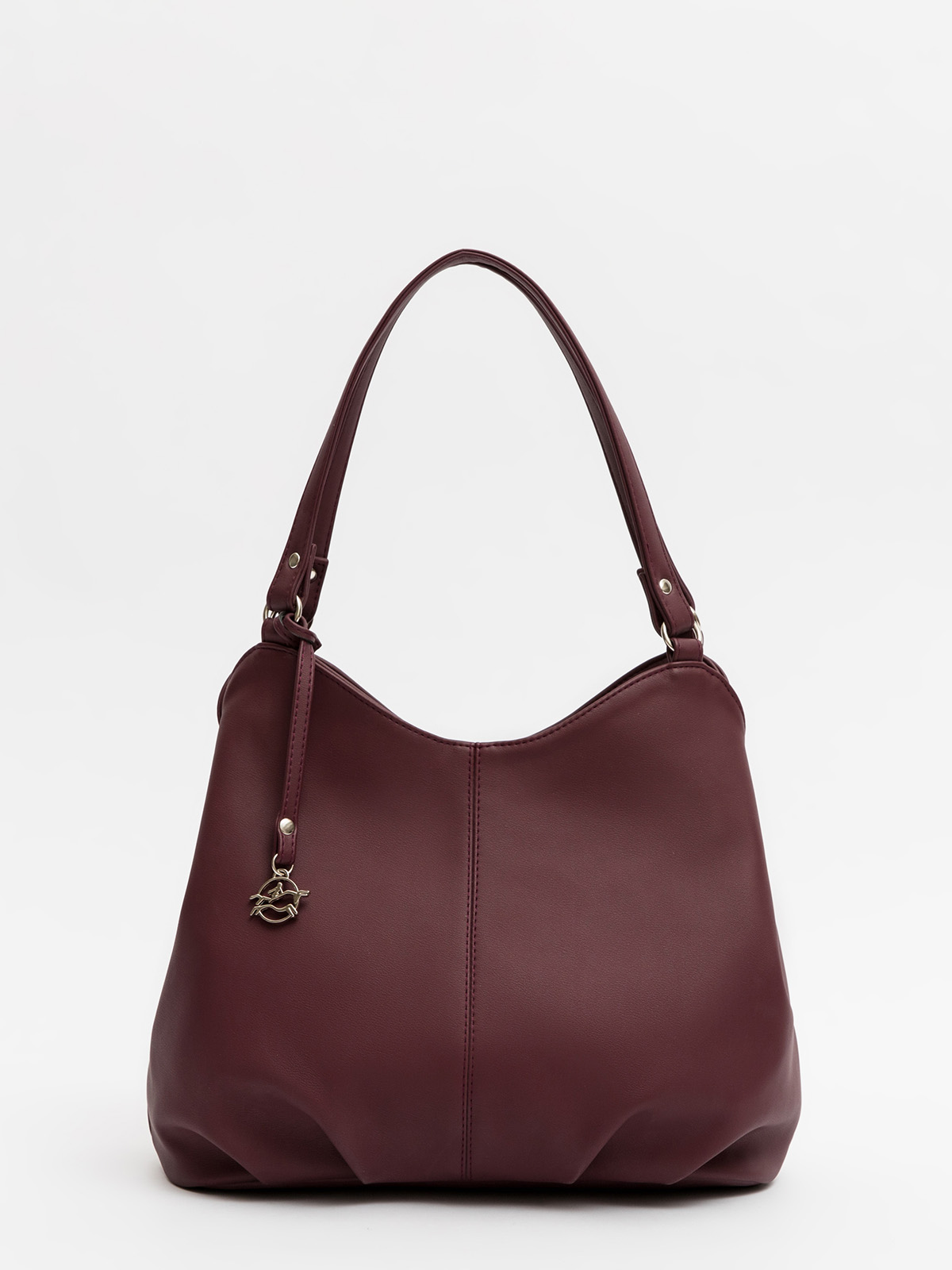 Фигурный верх и плоские ручки на кольцах подчеркивают лаконичность формы, а украшение в виде быка добавляет характер. Длинный регулируемый ремень позволяет носить сумку через плечо, освобождая руки.