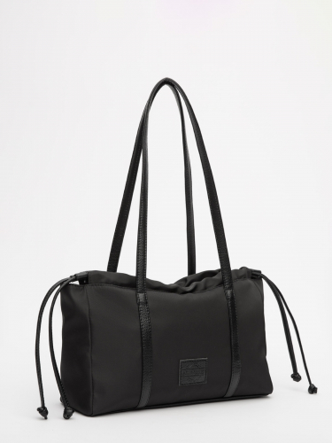 Трендовый силуэт вытянутого прямоугольника со стильными складками создаёт дополнительный объём и добавляет образу лёгкую женственность. Удобные ручки средней длины и съёмный ремень предлагают варианты ношения — от классического до более свободного. Литой декор и брендированная фурнитура подчёркивают статусность аксессуара.