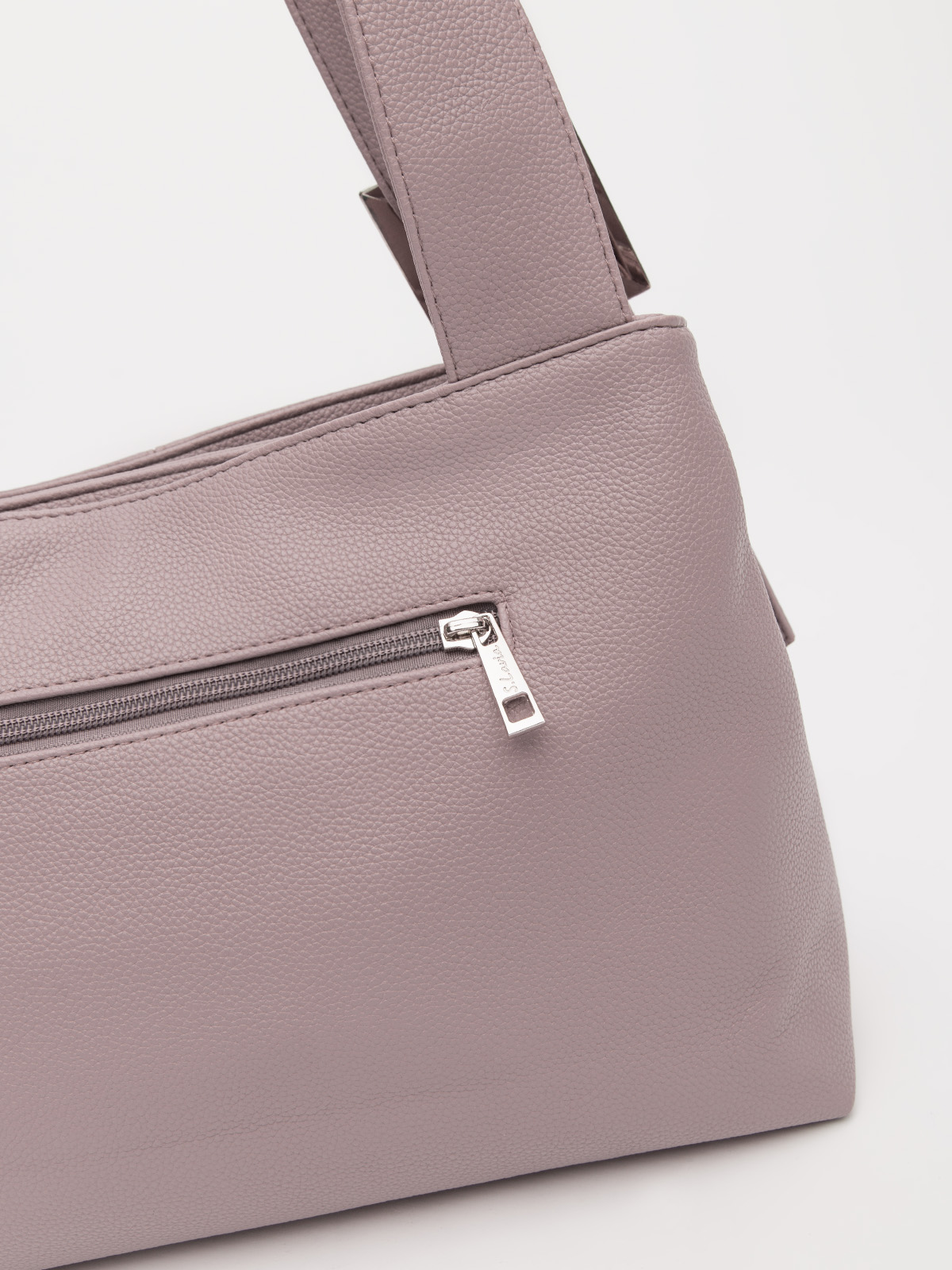 Сумка-тоут среднего размера — универсальная модель для повседневного использования. Оснащена двумя отдельными отделениями на молниях, что обеспечивает удобную организацию содержимого. Плоские широкие ручки обеспечивают комфортное ношение, а декоративная пряжка на передней части добавляет стильный акцент. На задней стороне расположен карман на молнии, внутри — практичные карманы для мелочей.