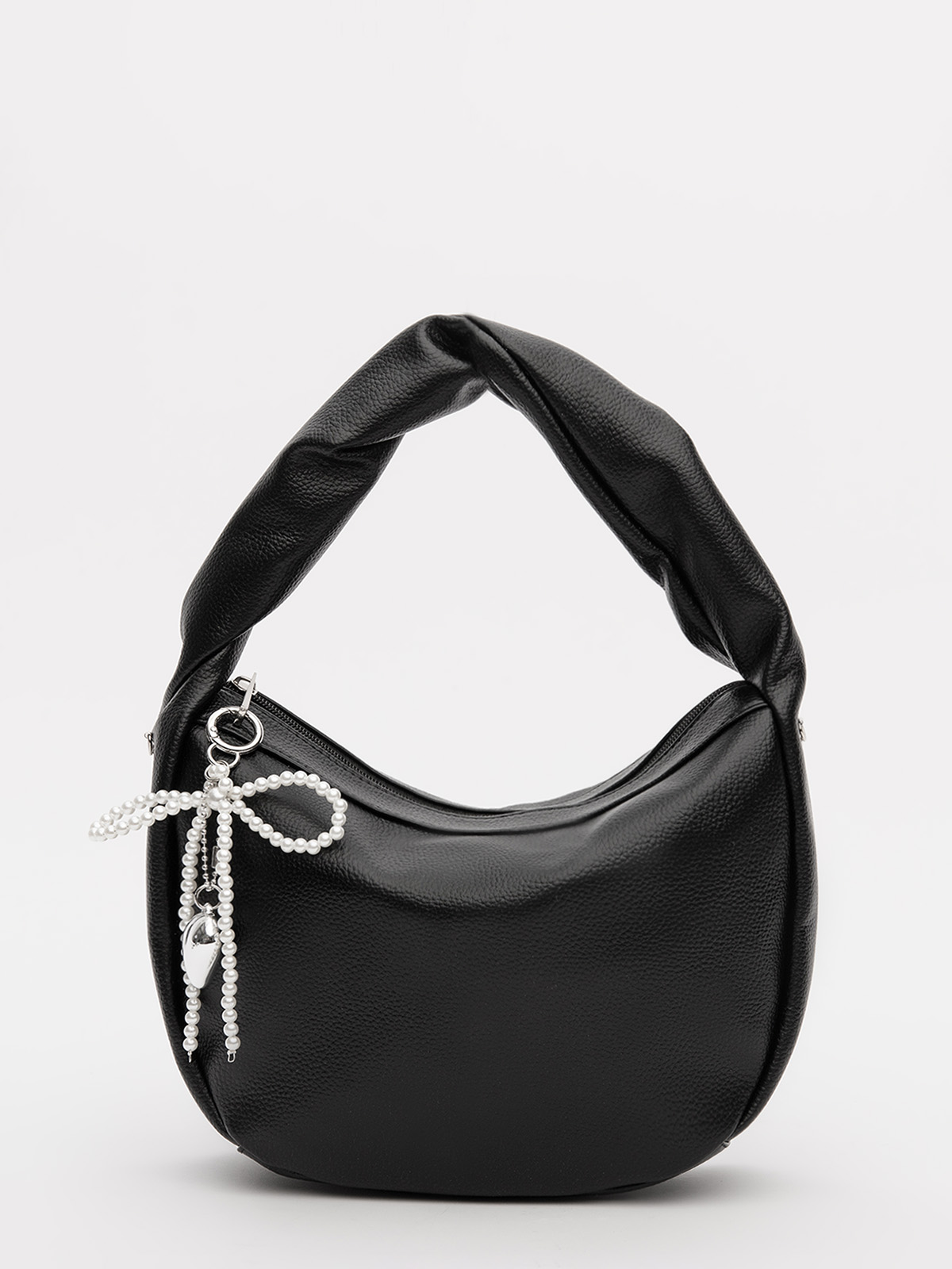 Мягкая округлая форма с эффектной перекрученной ручкой создаёт красивые драпировки, придавая образу лёгкую небрежность. Съёмный ремень позволяет носить сумку как кросс-боди через плечо или на плече, а стильный подвес на молнии можно менять, подстраиваясь под настроение.
