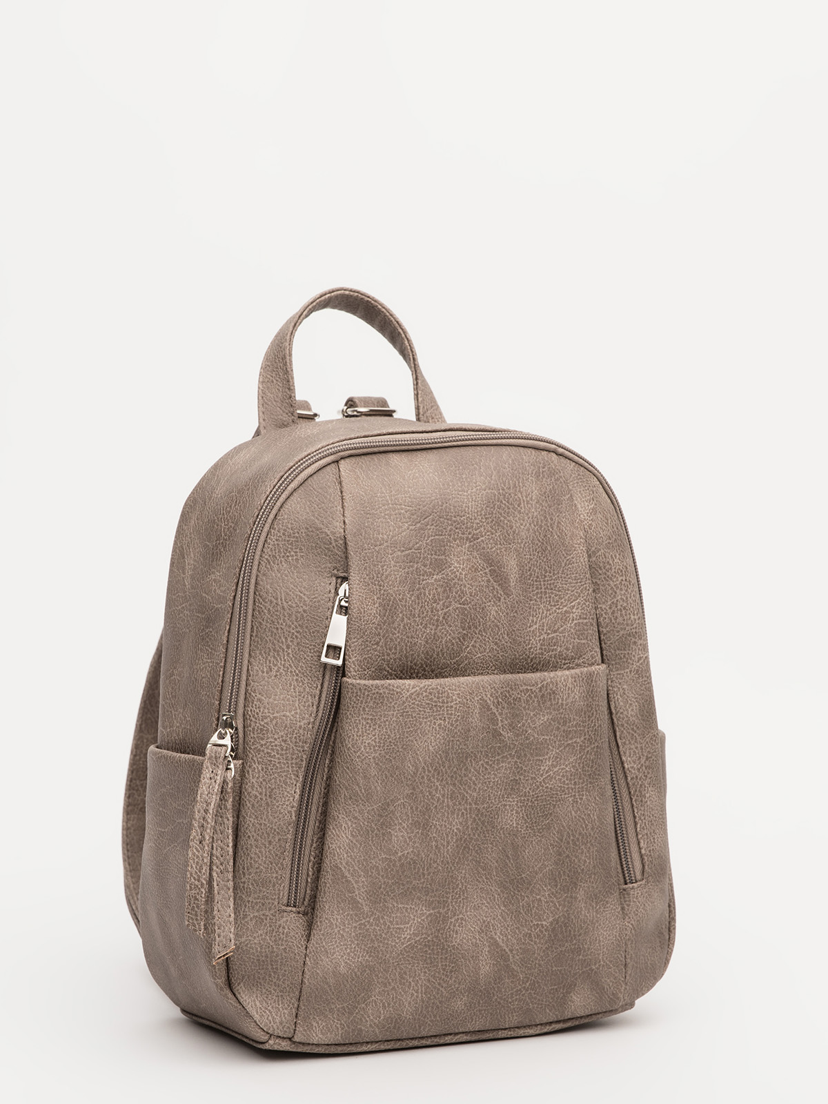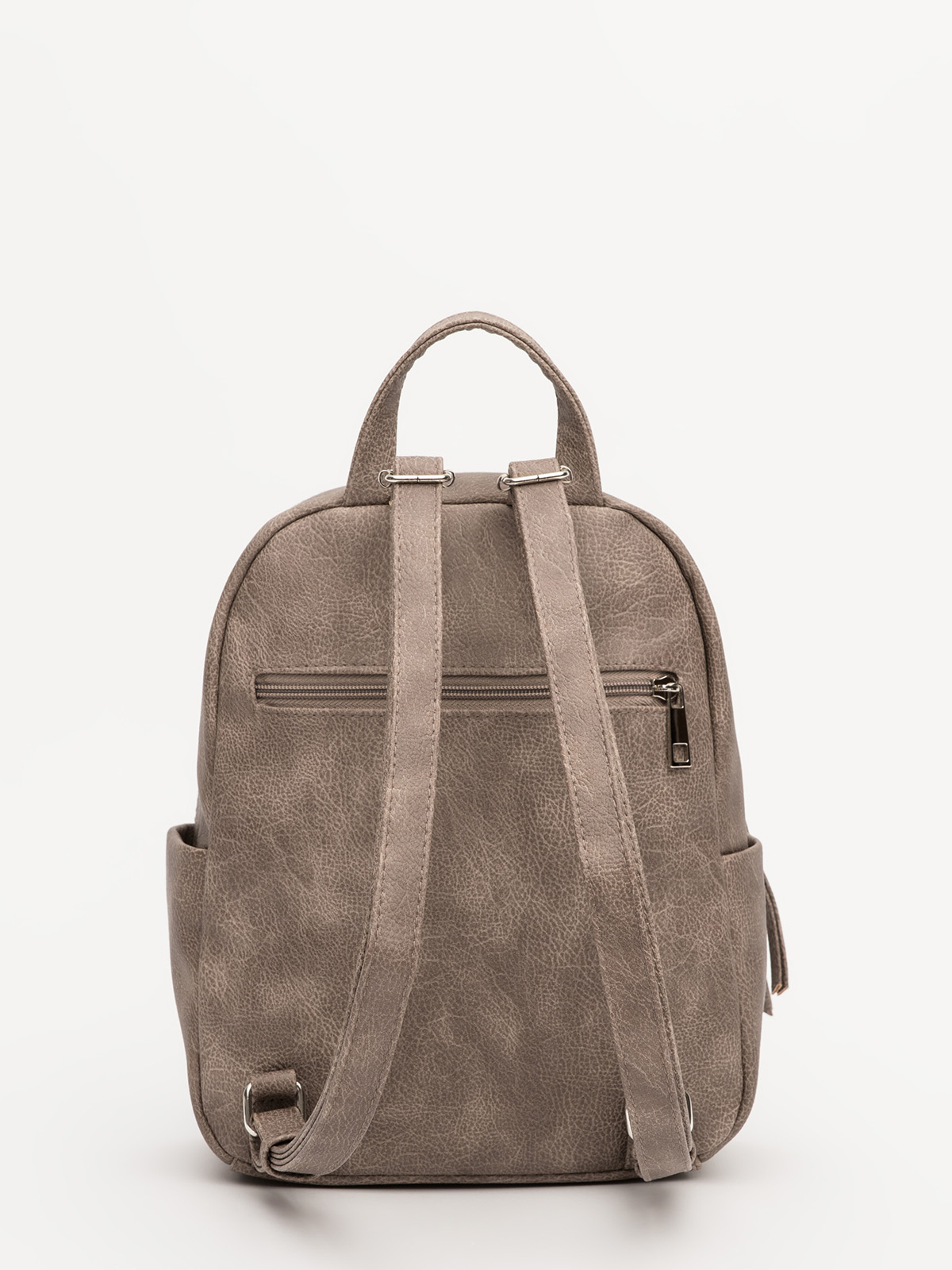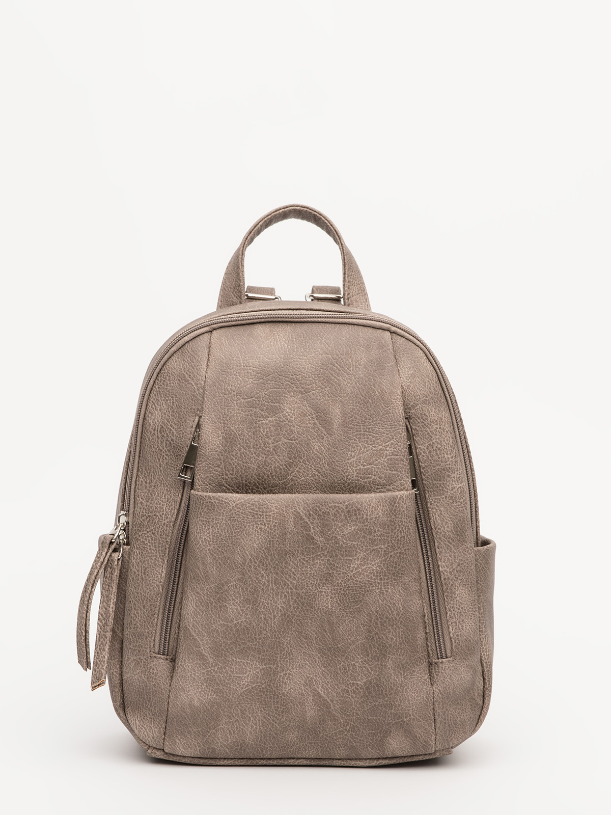 Его скруглённо-прямоугольная форма с рельефной фактурой кожи создаёт выразительный, но лаконичный силуэт. Передняя деталь с карманом на магните и тиснением подчёркивает трендовый характер модели, а боковые карманы на молнии (с кожаными наконечниками) добавляют практичности.