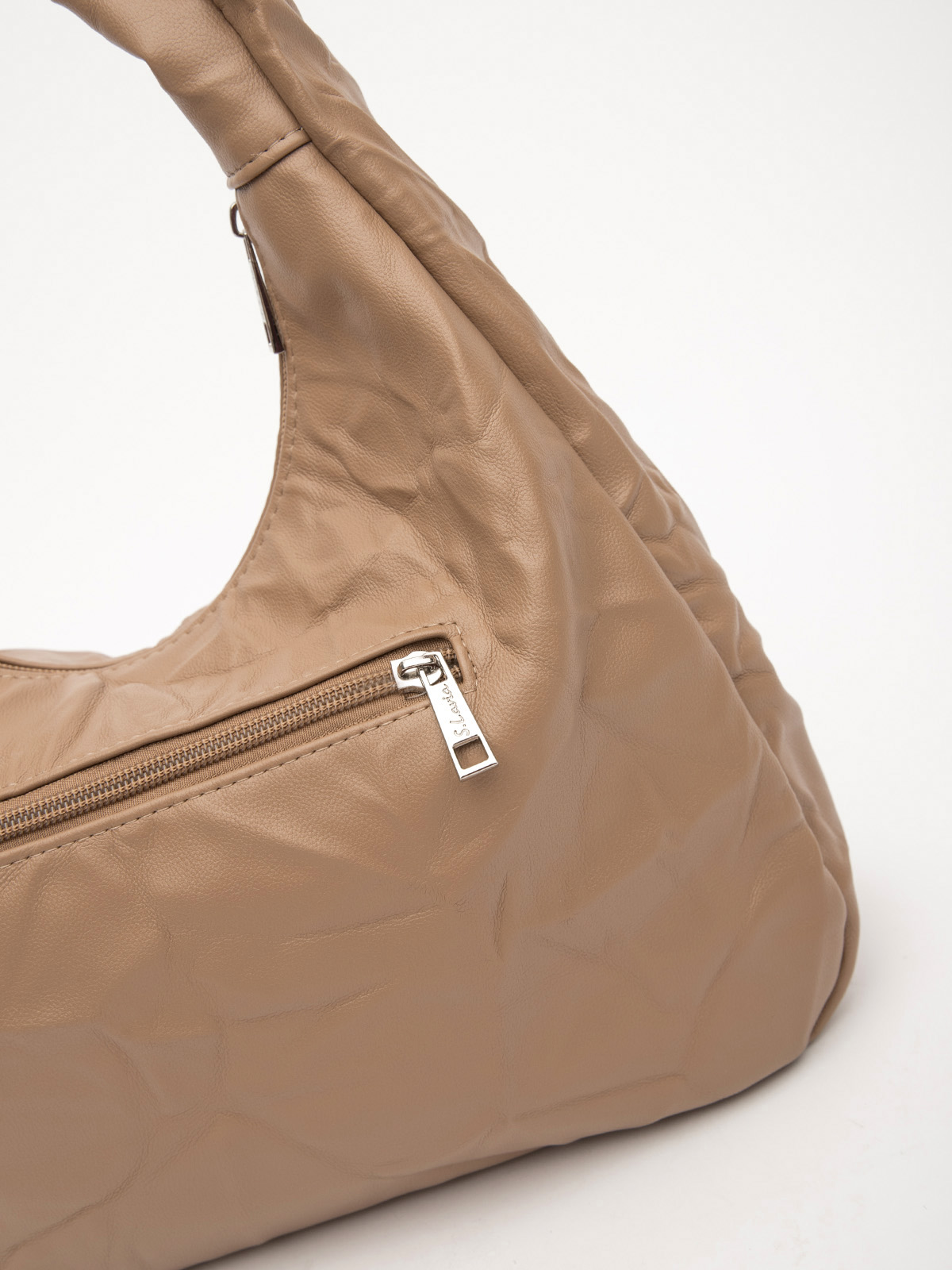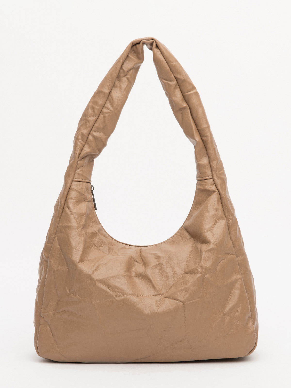 Стильная сумка-хобо из винилискожи с эффектом жатки – идеальный аксессуар для повседневных образов. Средний размер, одно основное отделение и три удобных кармана обеспечивают практичность и функциональность. Лаконичный дизайн и мягкая текстура делают её универсальным выбором под любой стиль.