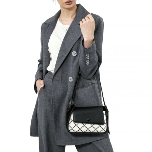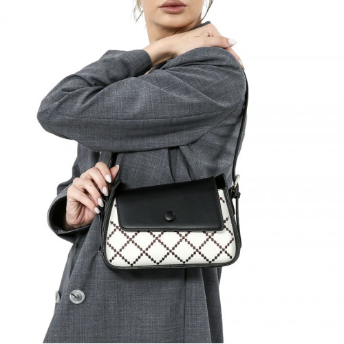 Внутри: одно большое отделение. Сумка закрывается на молнию и крышку-клапан с крепким замком-магнитом. В комплекте удлинённый ремень, регулируемый по высоте и съёмная ручка. Модель хорошо держит форму.