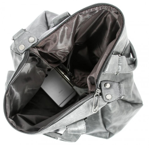 Внутри: одно большое отделение с карманами на боковых стенках - один на молнии и один открытый для телефона, документов и мелочей. На внешней задней стенке расположен один карман на молнии. На лицевой стороне один открытый карман и два на молнии. В комплекте удлиненный наплечный ремень, регулируемый по высоте. Сумка закрывается на молнии.