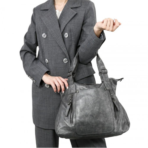 Большая удобная сумочка на каждый день. Модель выполнена из фактурной искусственной кожи высокого качества, внешне не отличимой от натуральной.